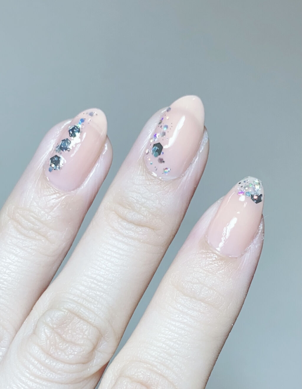 2021年のネイルデザインでバズってる、ガラスフレンチをやってみました💕とにかくキラキラが可愛い💎ファンデーションカラーズの透明感ある色と、純銀のホログラムの相性抜群でした😍✨是非参考にしてみて下さい💕①ラベンダーピンクを4度塗り❣️②フレン...