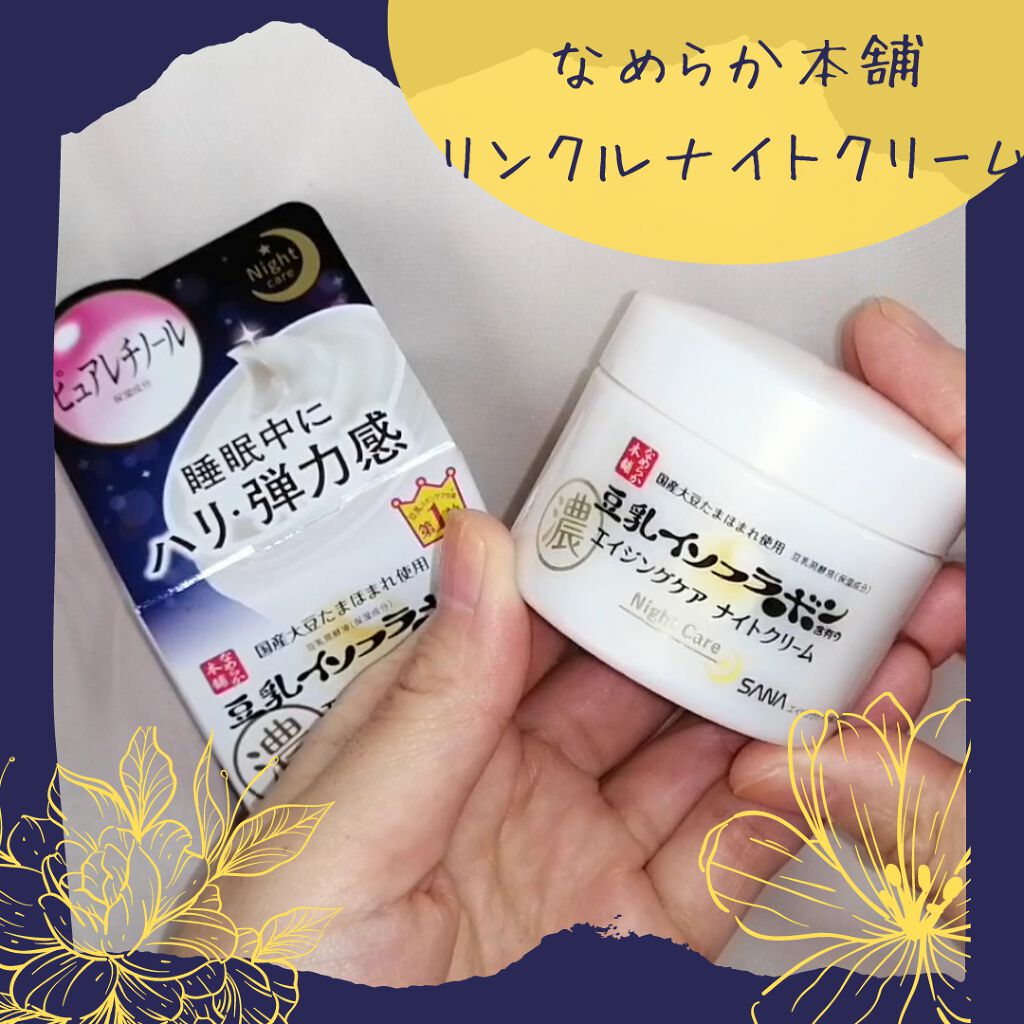- リンクルラインからナイトクリームが新登場! ピュアレチノール*1を新配合の濃厚クリームが一晩かけて密着して浸透*2する、おやすみパック処方です。 商品特徴 〔 ①ピュアレチノール*1×豆乳発酵液*1配合で本格スキンケア 〕 『なめらか本舗』オリジナルのイソフラボン含有の豆乳発酵液*1に加え、ピュアレチノール*1を新配合! お肌にハリ・弾力感を与えます。 〔 ②夜のしっかりケアで乾燥による小じわを目立たなくします*3! 〕 肌ストレスの少ない夜のお手入れをおすすめします。 新登場のナイトクリームはおやすみパック処方を採用し、濃厚なクリームが一晩中肌に密着しつつ、乾燥による小じわ目立たなくします。 〔 ③3ステップの重ね技ケア! 〕 化粧水、乳液も新テクスチャーで保湿感がパワーアップ! リンクルライン3品一緒に使用するのがおすすめです。 *1 保湿成分 *2 角層まで *3 効能評価試験済み