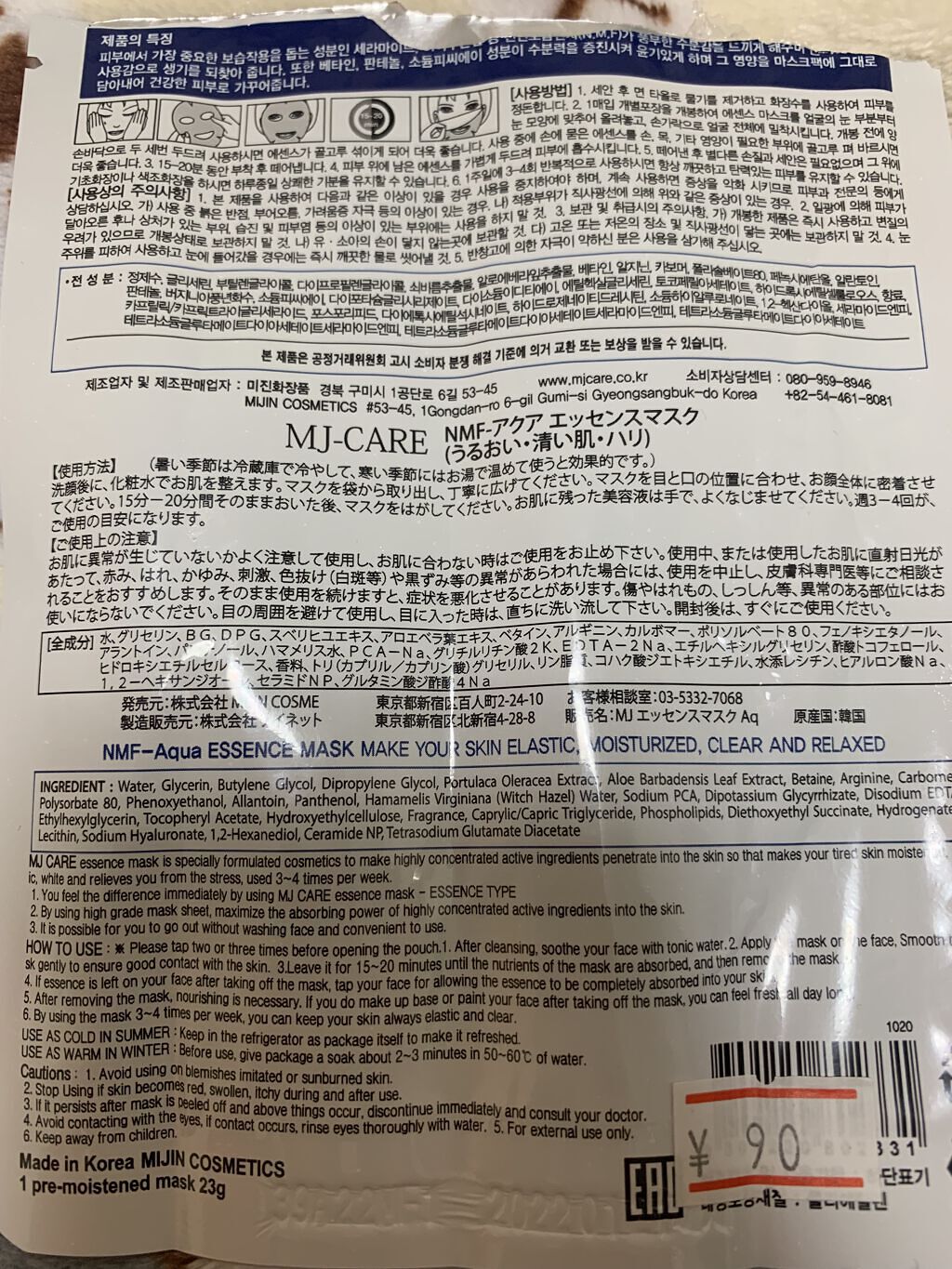 MJ-Care コラーゲンエッセンスマスク | 52円 |