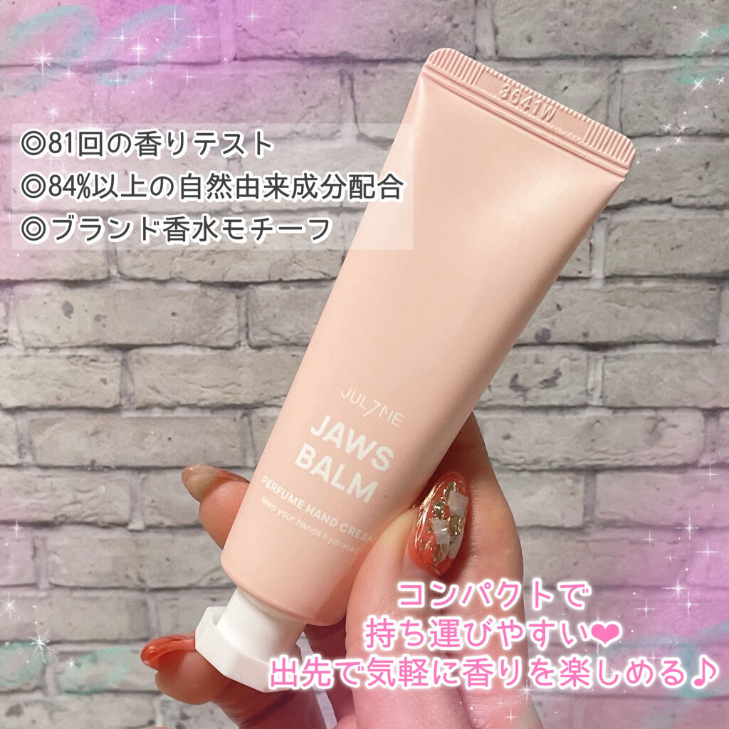 保湿力は特別高いわけではありませんが、ベタつかない程度に潤してくれるのが使いやすいと感じました。 7日7香り❗️ このハンドクリームは香りが1番のポイントだと思っています♪ 個人的にジョーズバームという香りが爽やかだけど、甘いような絶妙な香りで好みでした