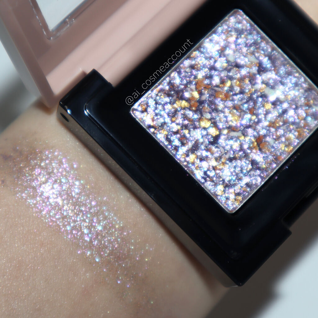 わたしはパープル系を購入しました。 細かいラメと面で光るラメがミックスで入っていてかわいい!! カラーはほぼつかないので塗るとパープルというよりシルバーっぽくも見えます。 ラメが時間の経過とともに少し減る気もしますが、顔に飛んだりは今のところないのでいいです。 冬が待ち遠しくなるかわいいアイシャドウ! ゴールドも見つけたら買おうと思います。