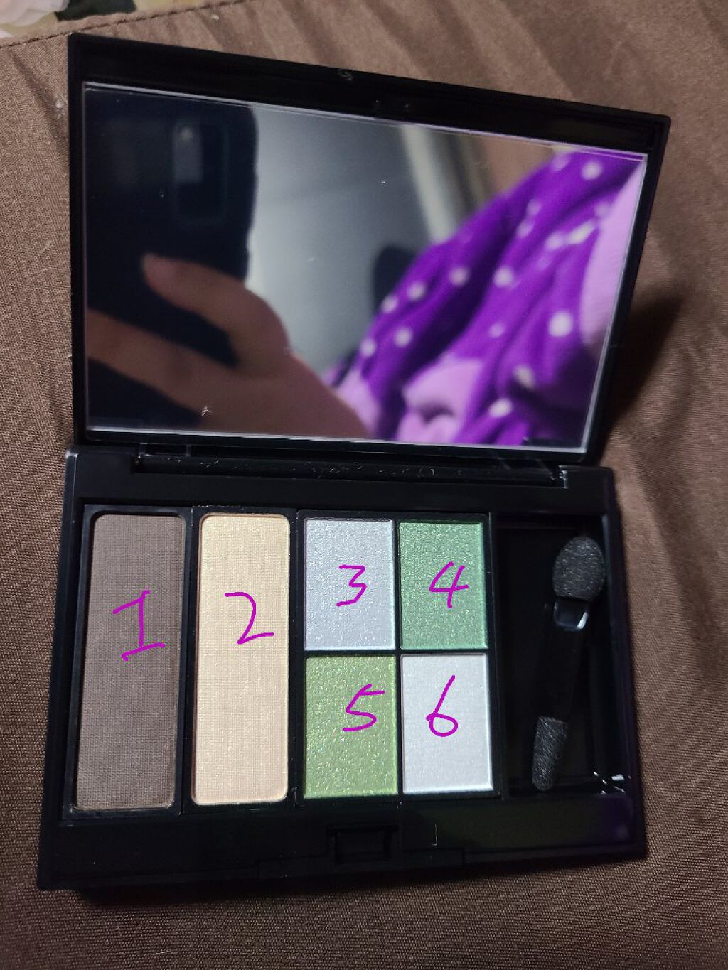 サバナクロー寮はブラウン系でイエベ歓喜の普段使いしやすいカラー🥺✨ ラメも上品で可愛くて推しの概念のパレットなのでテンション上がります😍 右側の4つはアイシャドウとして左側の2つはノーズシャドウやハイライトとして使うのがベストかなと思いました☺️