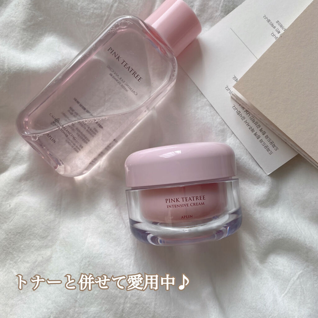 APLINで人気のピンクティーツリーシリーズの化粧水。ティーツリー成分やCICA成分を配合し、肌を落ち着かせ健やかに整える働きが期待できます。 さらりとしたテクスチャーで、ベタつき・ヌルつき感はありません。軽やかで、なじませると肌にぐんぐん吸い込まれていく感じ✨ 大人可愛い見た目で使っていて気分も上がるし、お花をイメージするようないい香りも◎!