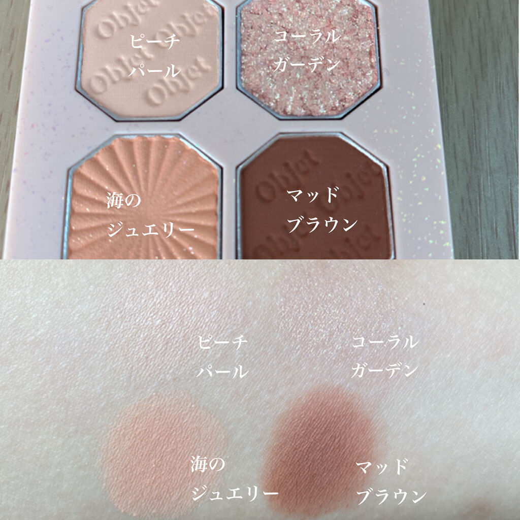 肌馴染みの良いコーラルカラー、締め色が赤みのあるブラウンなので可愛くなり過ぎず、しっかり目元をまとめてくれます◎ ヌーディーなカラーと締め色カラーはマット、メインカラーはほんのりラメ、プラスで楽しめるラメと捨て色なしの4色パレット🎨 爽やかさあふれる肌なじみのよいコーラルで可憐な印象に。