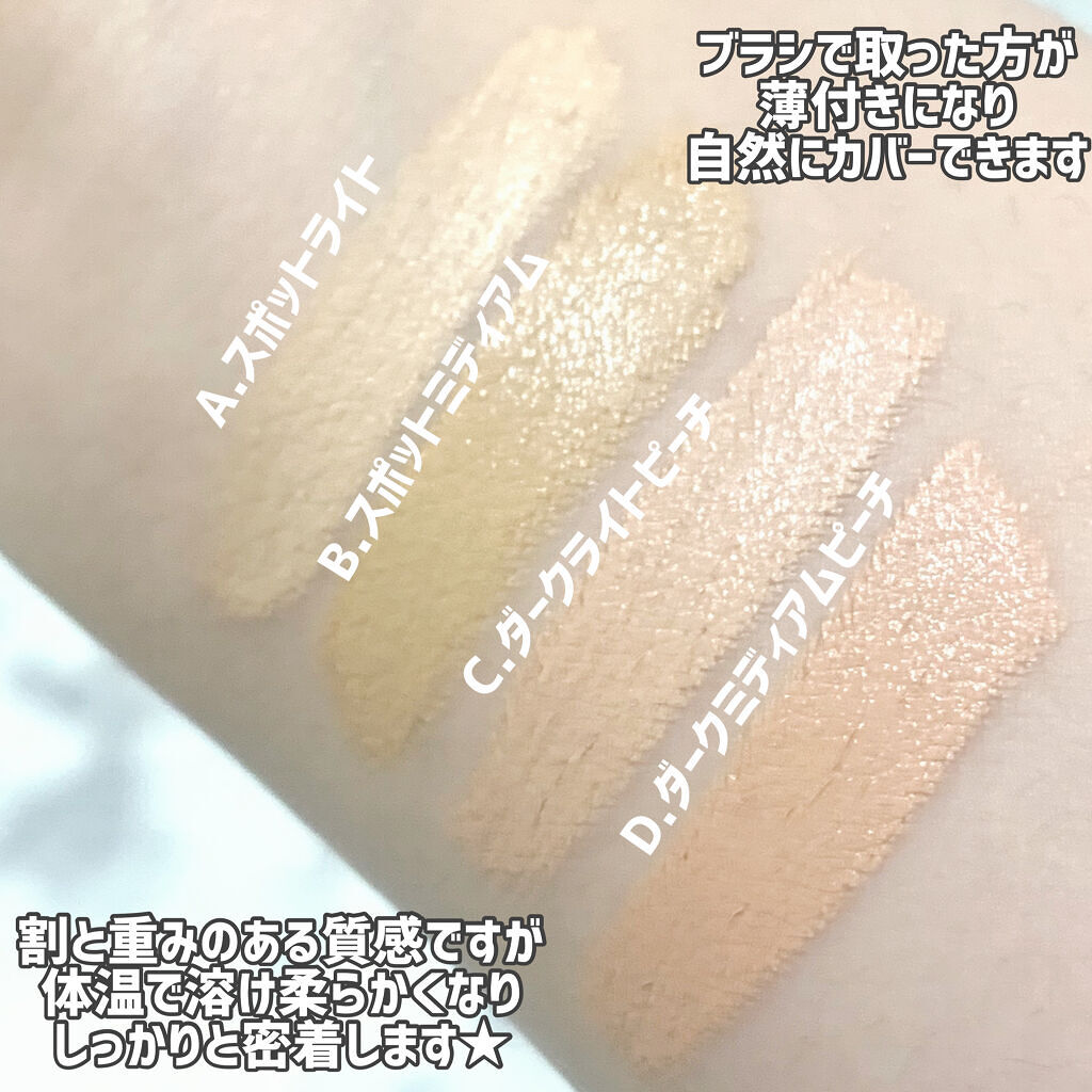 | コンシーラーランキング第23位 | コンシーラーが指の温度でとろける しっとりとした、なめらかなテクスチャー | 詳細を見る | |