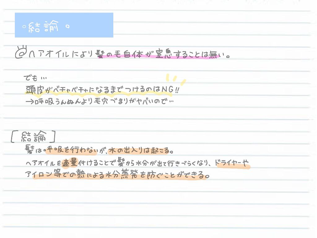 【髪の毛の呼吸について】よく、「ヘアオイルをつけすぎると、髪の毛が窒息してしまって余計に髪が傷んでしまう」って言われているのを目にしますが、今回はそれについて自分なりに分析してみました🥺①呼吸についてまず、前提として呼吸とは主に生きてる細胞で...
