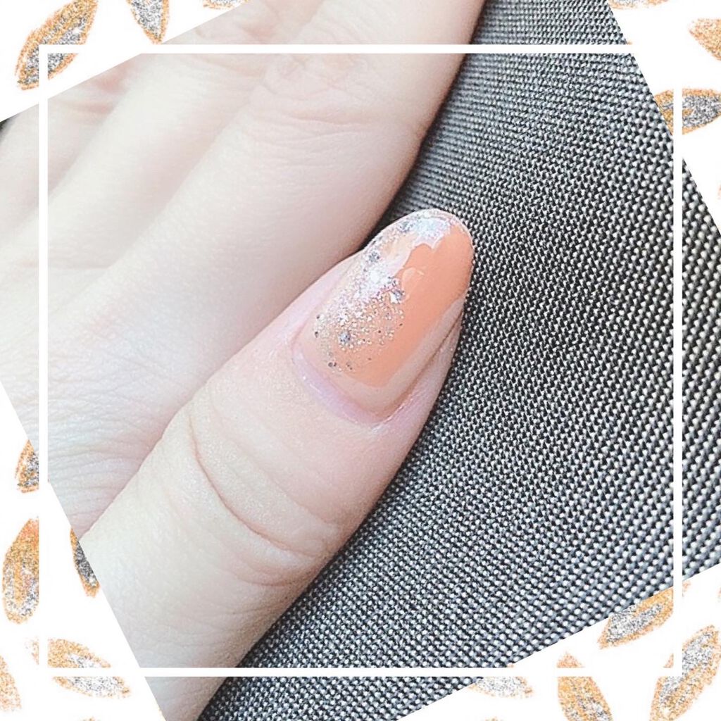 オレンジの誘惑に負けた🧡😍可愛すぎる!!ちふれのオレンジラメ🧡ちふれネイルエナメル017カラフルラメ可愛い、、マジで可愛すぎて夢中で塗ってたら、グラデーションしか出来なかった(笑)オレンジの微細なラメに、大きめゴールドのホロ⭐️塗るとシアーな...