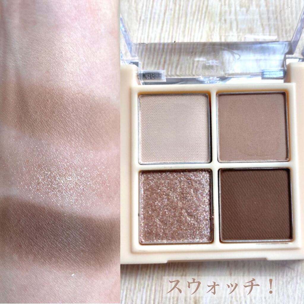 全体的にマットな質感ですが グレージュの色だけ ホワイトパールが入っています。 色味は赤みも黄みも少なく とても使いやすいです。 ロムアンドのアイシャドウは 発色も良く粉質も使いやすいです。