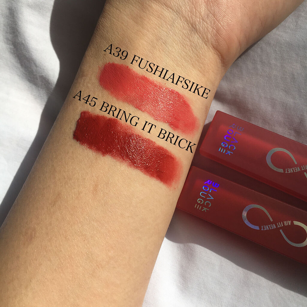 【ブランド】BLACKROUGE【シリーズ】エアフィットベルベットティント【カラー】A45【質感】セミマット【色味】オレンジがかかった明るいレッドこのシリーズはBLACKROUGEの他のベルベットティントシリーズより、少しサラサラ感があり、ま...