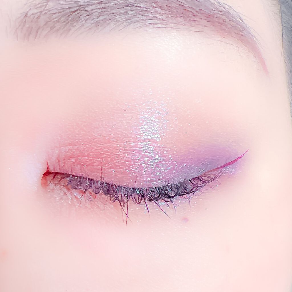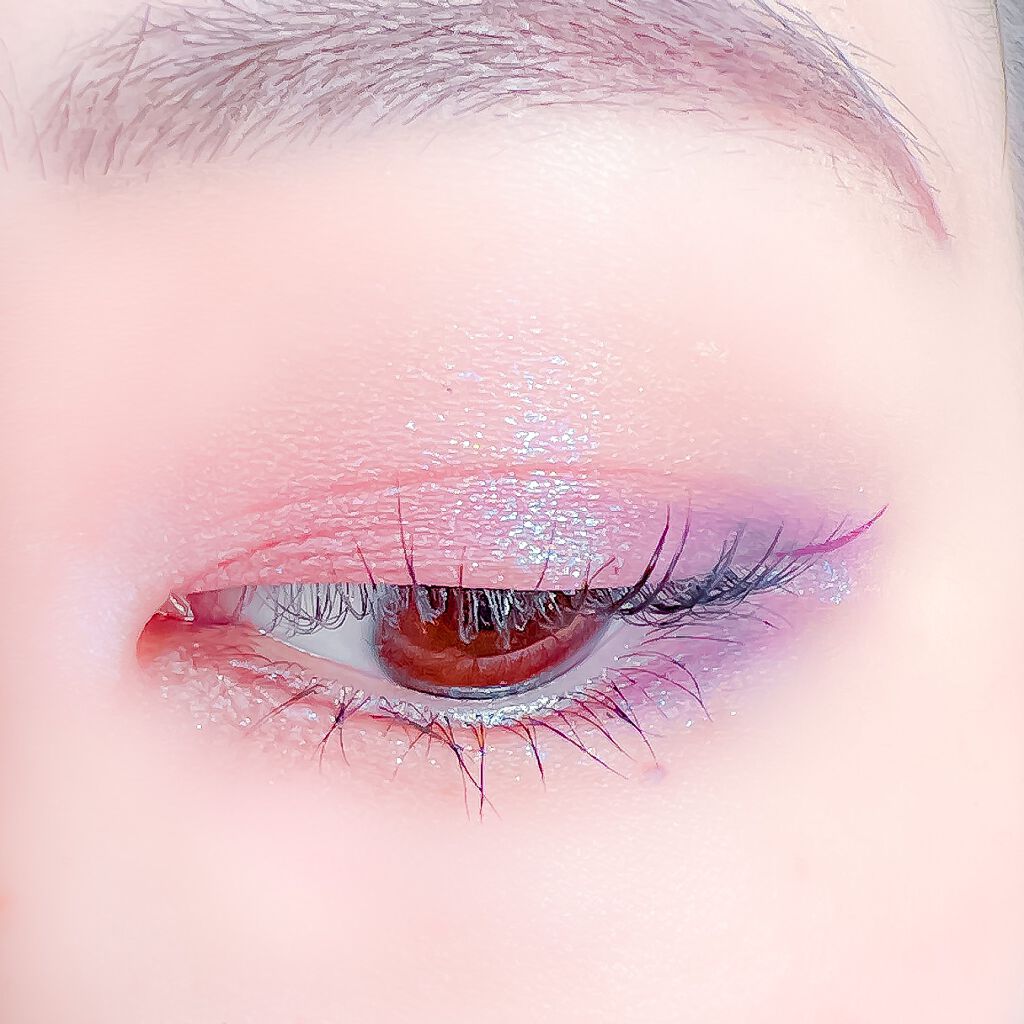 ベースに右上、目頭から黒目上に真ん中、黒目〜目尻に右下を、左上を目頭にくの字に塗ってもらいました✨ ピンクサクラよりもクールな感じで、目で見た色より私の肌では紫っぽく発色しました😍 上2つはラメはぎっしりでときめく💓 ブラウンメイクがとても苦手だけれどこれならブラウンメイク出来そう👌(かなり紫寄りですが) くすみ感は強いので苦手な方は厳しいかも…(特に真ん中) クールな印象になるので大人顔さん向けor大人顔になりたい方向けのイメージです✨