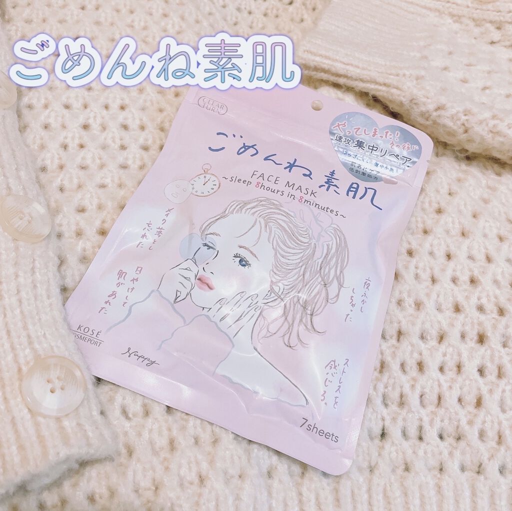 毎日の化粧水代わりに使える30枚入りの「まいにちごめんね素肌マスク」が登場〜!たった3分のクイックケアで美容液が角層までたっぷり浸透✨ 高密着薄手タイプのシートがお肌にぴたっと密着◎ さっぱり系のエッセンスに見えますが、しっとり仕上がり🫧 イラストレーターNappyさんとコラボしたこのパケも可愛くて使うたびに幸せな気持ちに🫰