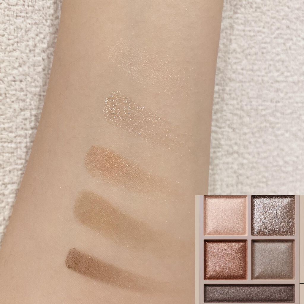 - パノラマエリア※に光をとりこみ、180 度横顔まで美しい、立体感のある印象的な目もとへ。 ● 4つの質感でパノラマエリア※に光をとりこみ、立体的な目もとを叶える5色セットのアイパレットです。※パノラマエリアとは目頭、眉下、こめかみ、頬骨を結ぶ目もと部分 【A色】しっとりとした質感で、光をとりこみ立体感をあたえるライトスフレベース。するするとした軽いのび広がりと、肌への密着性を両立したベースカラーです。あとから重ねるアイカラーの化粧持ちを高めます。 【B色】輝度が高い大粒パールを配合。大胆なツヤや輝きをあたえたい部分に重ねて、華やかな印象に仕上げます。 【C色】なめらかなのび広がりで発色が高く、上品で繊細な輝きをあたえるアクセントカラーです。 【D&E色】やわらかな質感。マットでフォギーな仕上がりで、ふんわりとした印象を叶えます。 ● 肌との親和性の高いフィットオン成分配合。肌なじみの良さを叶えます。 ● 美容液成分配合。メイクしながらうるおいを保ちます。 ● 無香料 ※美容液成分〔ヒアルロン酸・スクワラン〕(保湿) ※フィットオン成分(肌なじみ成分)…ラウロイルグルタミン酸ジ(フィトステリル/オクチルドデシル)です。