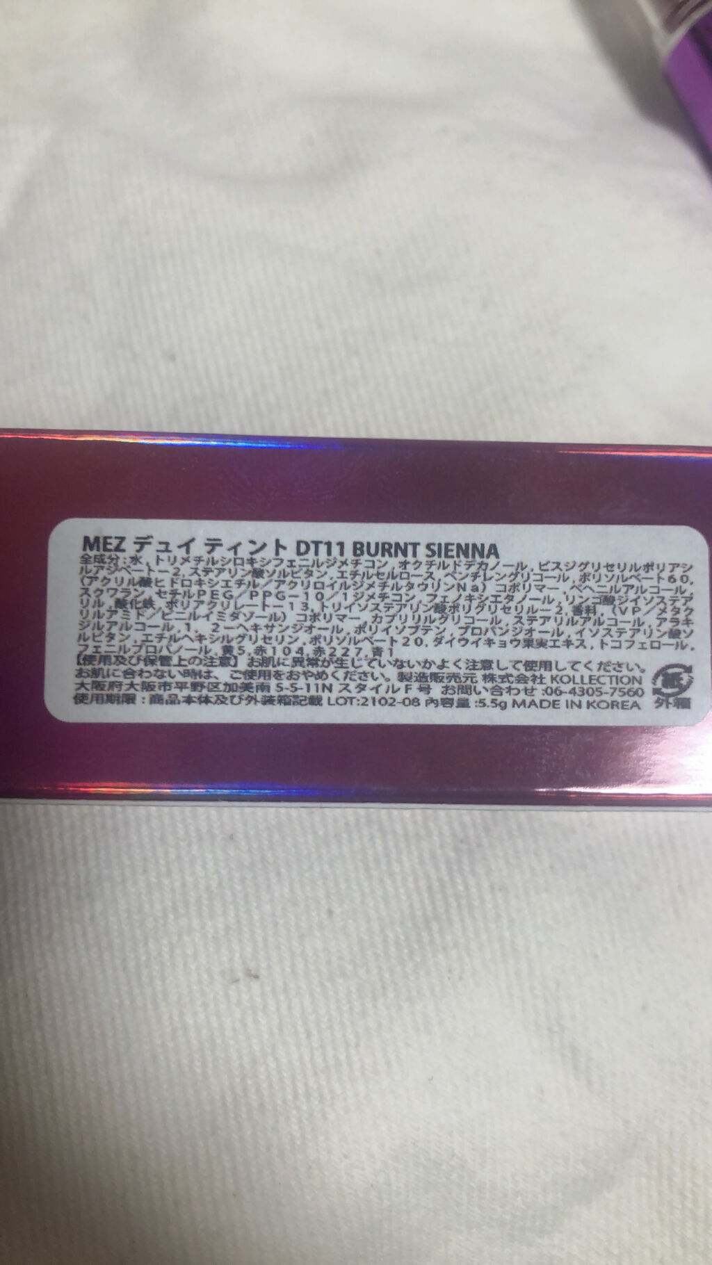 - DT1.ローズレイン:水, トリメチルシロキシフェニルジメチコン, オクチルドデカノール, ビス ジグリセリルポリアシルアジペート‐2, ステアリン酸ソルビタン, エチル セルロース, ペンチレングリコール,(アクリル酸ヒドロキシエチル/アクリ ロイルジメチルタウリンNa)コポリマー, ベヘニルアルコール, ポリソルベ ート60, スクワラン, セチルPEG/PPG‐10/1ジメチコン, トリイソステアリ ン酸ポリグリセリル‐2, フェノキシエタノール, 黄5, ポリアクリレート‐1 3,(VP/メタクリルアミド/ビニルイミダゾール)コポリマー, カプリリルグ リコール, ステアリルアルコール, アラキジルアルコール, 赤202, 1,2‐ヘキ サンジオール, ポリイソブテン, 香料, エチルヘキシルグリセリン, プロパン ジオール, 赤227, イソステアリン酸ソルビタン, 酸化鉄, 赤104(1), リンゴ酸 ジイソステアリル, ポリソルベート20, ダイウイキョウ果実エキス, フェニ ルプロパノール, トコフェロール, ホホバ種子エキス, アーモンド油, オリー ブ果実油, BG, ヒアルロン酸Na DT2.ノーマッドコーラル:水, トリメチルシロキシフェニルジメチコン, オクチルドデカノール, ビス ジグリセリルポリアシルアジペート‐2, ステアリン酸ソルビタン, エチル セルロース, ペンチレングリコール,(アクリル酸ヒドロキシエチル/アクリ ロイルジメチルタウリンNa)コポリマー, ベヘニルアルコール, ポリソルベ ート60, スクワラン, セチルPEG/PPG‐10/1ジメチコン, フェノキシエタノ ール, ポリアクリレート‐13, 香料,(VP/メタクリルアミド/ビニルイミダゾ ール)コポリマー, カプリリルグリコール, アラキジルアルコール, トリイソ ステアリン酸ポリグリセリル‐2, 1,2‐ヘキサンジオール, ポリイソブテン, 黒酸化鉄, プロパンジオール, エチルヘキシルグリセリン, 赤227, リンゴ酸 ジイソステアリル, 赤酸化鉄, イソステアリン酸ソルビタン, 赤202, ポリソ ルベート20, 黄5, 赤104(1), ダイウイキョウ果実エキス, トコフェロール, フ ェニルプロパノール, ホホバ種子エキス, アーモンド油, オリーブ果実油, BG, ヒアルロン酸Na DT3.アンバーウェーブ:水, トリメチルシロキシフェニルジメチコン, オクチルドデカノール, ビス ジグリセリルポリアシルアジペート-2, ステアリン酸ソルビタン, エチル セルロース, ペンチレングリコール,(アクリル酸ヒドロキシエチル/アクリ ロイルジメチルタウリンNa)コポリマー, ベヘニルアルコール, ポリソルベ ート60,スクワラン,セチルPEG/PPG‐10/1ジメチコン, トリイソステアリン 酸ポリグリセリル-2, フェノキシエタノール, ホウケイ酸(Ca/Al), ポリア クリレート‐13, 香料,(VP/メタクリルアミド/ビニルイミダゾール)コポ リマー, カプリリルグリコール, 酸化チタン, アラキジルアルコール, 赤酸化 鉄, ステアリルアルコール, 1,2‐ヘキサンジオール, 黄5, ポリイソブテン, 赤202プロパンジオール, エチルヘキシルグリセリン, リンゴ酸ジイソステ アリル, 黒酸化鉄, 黄酸化鉄, 赤227, イソステアリン酸ソルビタン, 赤104(1), ポリソルベート20, ダイウイキョウ果実エキス, 水酸化Al, トコフェロール, フェニルプロパノール, ホホバ種子エキス, アーモンド油, 青1, オリーブ果 実油, BG, ヒアルロン酸Na DT4.メイプルモーメント:水, トリメチルシロキシフェニルジメチコン, オクチルドデカノール, ビスジ グリセリルポリアシルアジペート-2, ステアリン酸ソルビタン, エチルセル ロース, ペンチレングリコール,(アクリル酸ヒドロキシエチル/アクリロイ ルジメチルタウリンNa)コポリマー, ベヘニルアルコール, ポリソルベート 60, スクワラン, セチルPEG/PPG‐10/1ジメチコン, トリイソステアリン酸 ポリグリセリル‐2, フェノキシエタノール, ホウケイ酸(Ca/Al), ポリアク リレート‐13, 酸化チタン,香料,(VP/メタクリルアミド/ビニルイミダゾー ル)コポリマー, カプリリルグリコール, ステアリルアルコール, 赤酸化鉄, アラキジルアルコール, 1,2‐ヘキサンジオール, 黄5, ポリイソブテン, 赤20 2, プロパンジオール, エチルヘキシルグリセリン, リンゴ酸ジイソステアリ ル, 黒酸化鉄, 赤227, 黄酸化鉄, イソステアリン酸ソルビタン, ポリソルベー ト20,赤104(1), ダイウイキョウ果実エキス, 水酸化Al, フェニルプロパノー ル, 酸化スズ, トコフェロール, ホホバ種子エキス, アーモンド油, オリーブ果 実油,青1,BG,ヒアルロン酸Na DT5.ヴィンテージサンセット:精製水,トリメチルシロキシフェニルジメチコン, オクチルドデカノール, ビ スジグリセリルポリアシルアジペート-2, ソルビタンモノステアレート,エ チルセルロース, ペンチレングリコール, ポリソルベート 60, トリイソステ アリン酸ポリグリセリル-2,アクリル酸ヒドロキシエチル/アクリロイル ジメチルタウリンNa, ベヘニルアルコール, 酸化鉄(III), スクアレン, セチルP EG/PPG‐10/1ジメチコン, 黄酸化鉄, フェノキシエタノール, リンゴ酸ジイ ソステアリル, 酸化鉄ブラック, ポリアクリレート-13, ンセットイエローF CF, 香料, VP/メタクリルアミド/ビニルイミダゾールのコポリマー, カプリリ ル