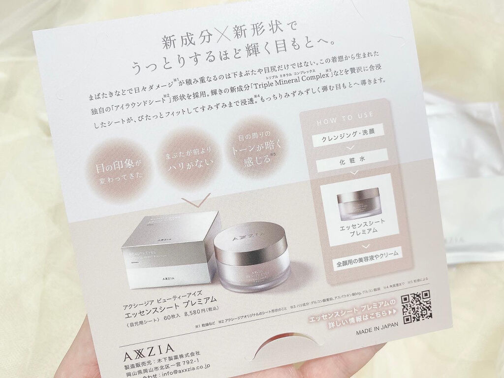 商品詳細情報AXXZIA ビューティーアイズ エッセンスシート プレミアム