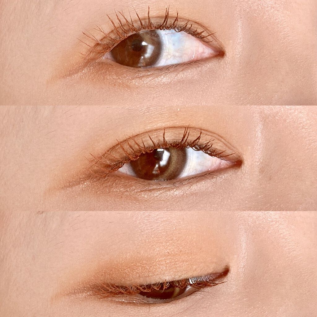 思っていたより三日月が目立つ! 目元をアップで撮影した時のかわいさは大満足♡ このデザインはあまりハイライトが目立たないものをこれからは選びたいと思いました。 ドリームブラウンはブラウンの部分がほとんど発色せずほんのり瞳の色が明るくなったかな?くらい。 ピーチクラウズより三日月部分が目立ちました。 瞳がパープルがかって見える効果は感じました◎ 私はブラウンよりこちらの方がデザインとしてバランスがとれていると思う。 ブラウンは黄色くなるからくすみやすくてイエベ向けですがピンクはパーソナルカラー関係なく使える色味です。