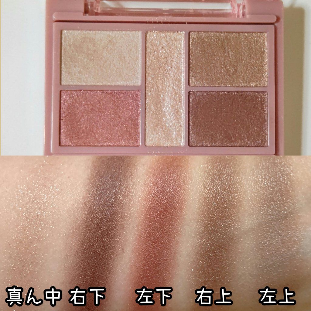 深みのあるくすみ系カラーが魅力の5色入りアイシャドウパレット。1つで2つの異なるメイクスタイルを楽しめるのが特徴で、スモーキーで落ち着いたトーンの色味が揃っています。 ラメは華やかだけど控えめで、普段使いにも特別な場面にも合わせやすいです。 粉質はしっとりしていてまぶたに密着しやすいです。プチプラながら発色も良く、コスパの高さがとにかく嬉しい♪