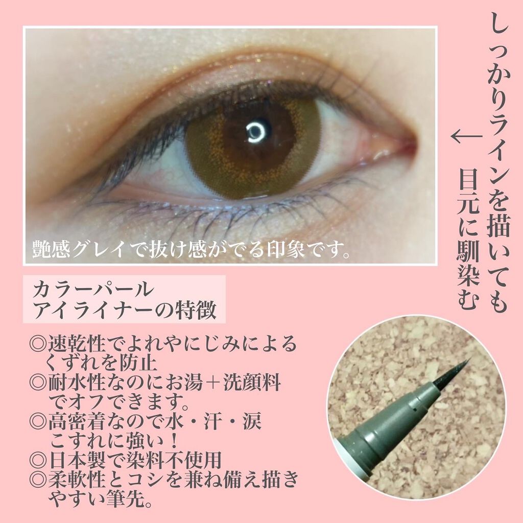 - 〇パールなのに落ちにくい!高密着なので水、汗、涙、こすれに強い。 きれいな仕上がりを持続。 〇発色に合わせた筆先を開発。 柔軟性とコシを兼ね備え、どんなラインでもブレずに描けます。 〇速乾性でよれやにじみによるくずれを防止。 〇染料不使用。 〇優れた耐水性なのにお湯+洗顔料でオフ。 (まれにアイシャドウ等と混ざると落ちにくい場合があります。その際はお使いのクレンジング料で落としてください)