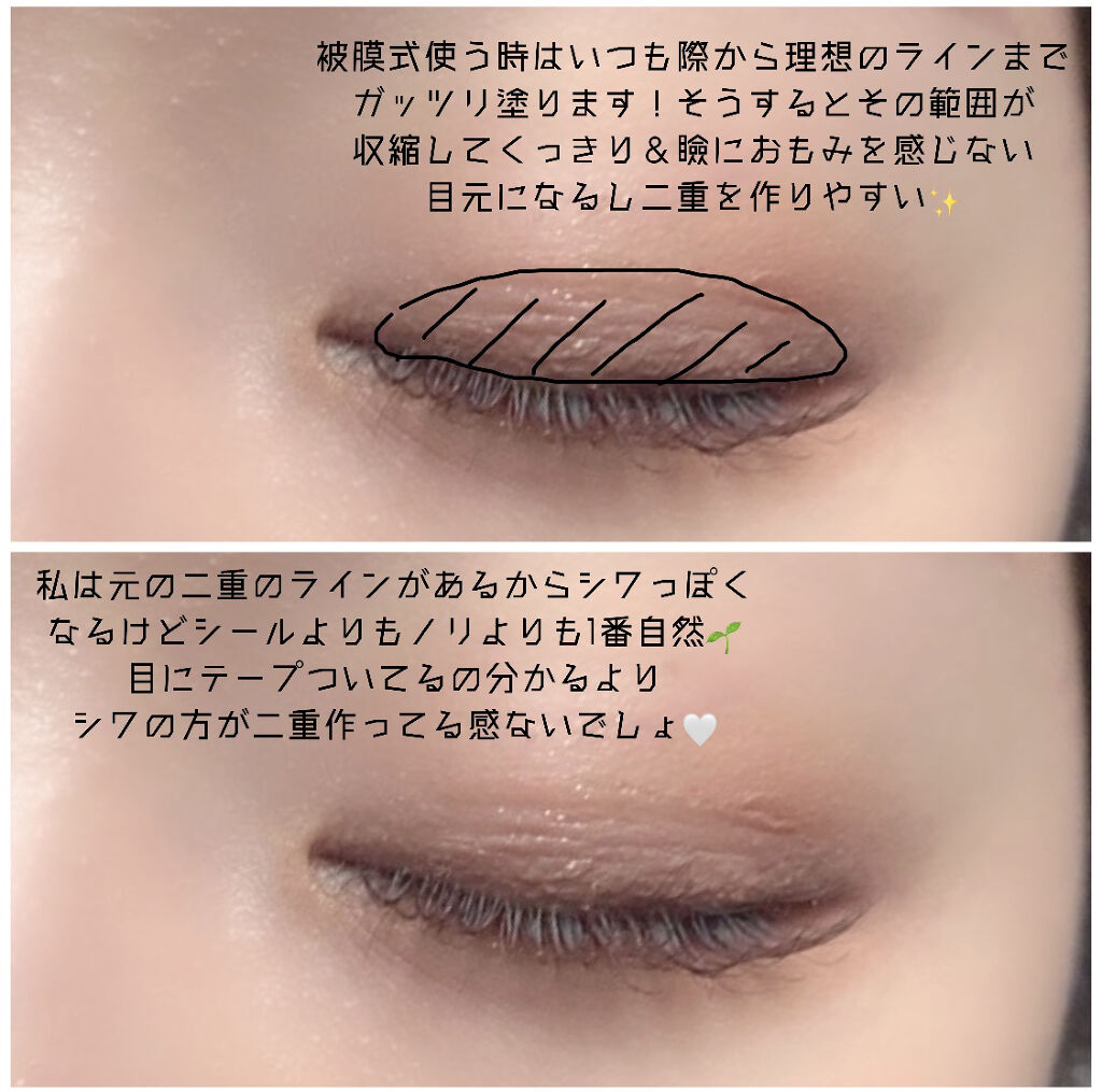 - 2020年6月3日 膜が強くなってリニューアル発売! 塗って乾かすだけのふたえ整形フィルム。見えない膜がふたえをつくり、自然なふたえが完成します。非接着タイプでまぶたを貼り付けないので、目を閉じても自然な仕上がり。まばたきしてもつっぱりません。水・汗に強いウォータプルーフでクッキリふたえをキープ。うるおい成分のヒアルロン酸・コラーゲン配合。