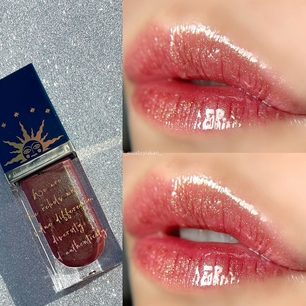 - 重たくないのにしっかり潤う。グロスなのにべたつかない。 軽くて保湿力も高く、マスクメイクにも使えます。 輪郭が簡単綺麗に描けるコンパクトなブラシヘッドが特徴です。 カレンデュラエキス、ヒバマタエキス等植物由来の美容成分成分配合で唇が敏感な方にもおすすめ。 薄塗りでしっとり上品に。厚塗りでぷっくり印象的な煌めきを。 まるで太陽と月を重ね合わせたような贅沢カラー。 ラメとグロスの絶妙な組み合わせは息をのむような美しさを演出します。