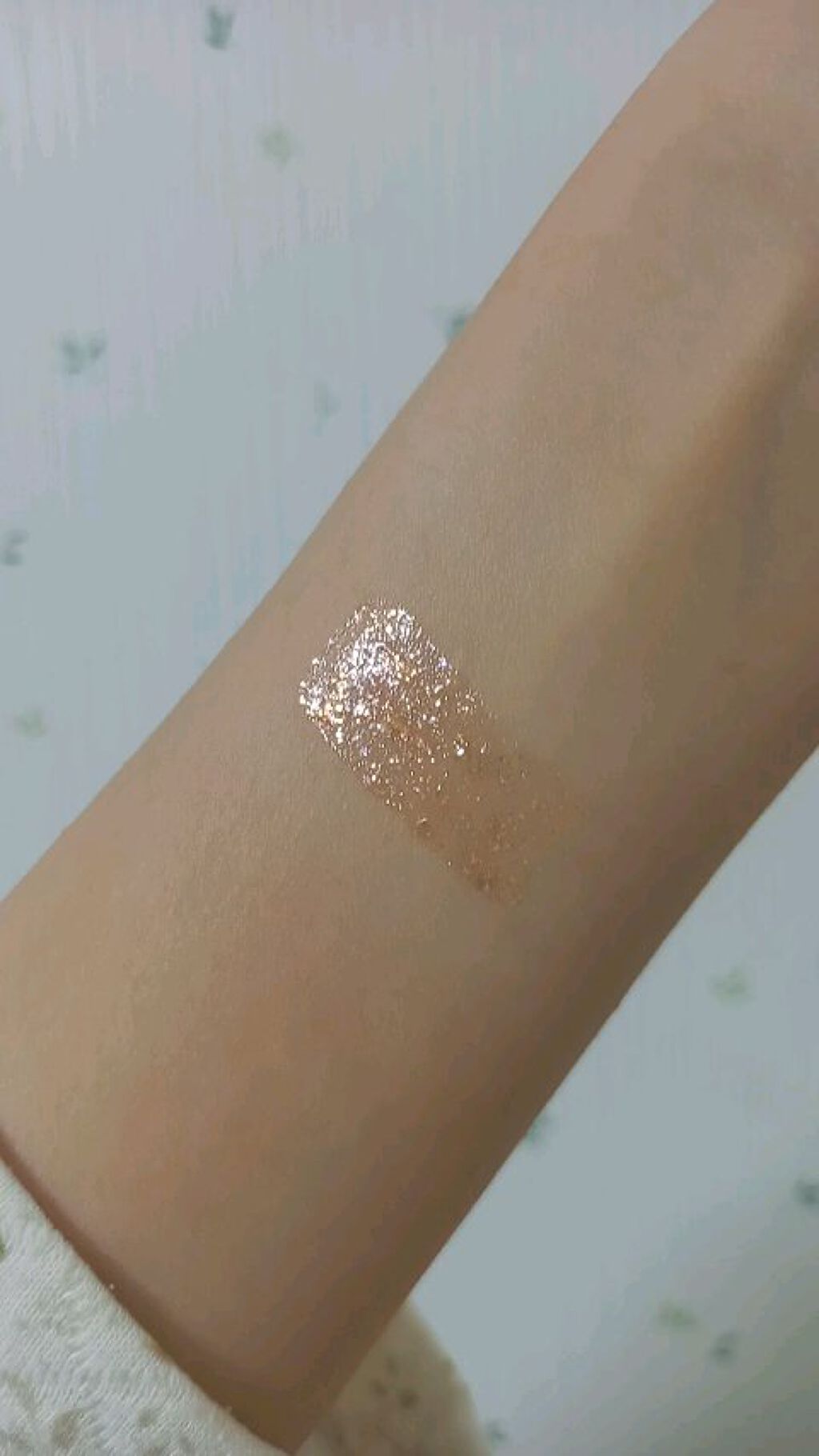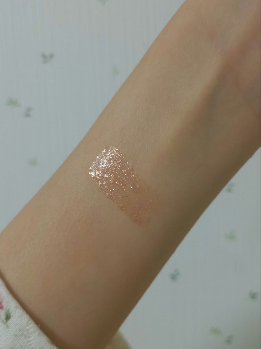 細かいラメと大きめのホログラムが混じっています꒰ˆ•ﻌ•ˆ꒱ 瞬きする度にキラキラしてかわいいです。 よく見ると色々なカラーのラメでてきていますがつけると自然ですฅʕ •ﻌ• ʔฅ