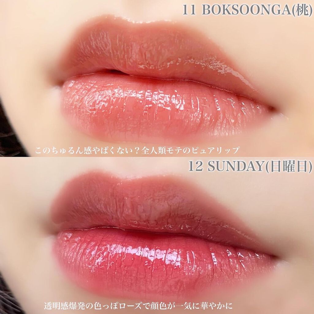 - <01 ラヴィアンコーラル> 精製水、ジフェニルジメチコン、リンゴ酸ジイソステアリル、ビスジグリセリルポリアシルアジペート-2、水添ポリイソブテン、ジグリセリン、セチルPEG/PPG-10/1ダイメチコン、DPG、イソステアリン酸ソルビタン、ポリソルベート60、オクチルドデカノール、ペンチレングリコール、グリセリン、二酸化チタン、セテアレス-20、アクリル酸ヒドロキシエチル/ナトリウムアクリロイルジメチルタウリン酸共重合体フェノキシエタノール、スクアラン、ポリグリセリン-3、香料、ステビオシド、黄色4号、エチルヘキシルグリセリン、赤色227号、トリ(カプリル/カプリン酸)グリセリル、赤色104号(1)、トコフェリルアセテート、黄色5 号、ブリリアントブルーFCF、マンゴー果実エキス、リンゴエキス <06 フィグデュー> 水、ジフェニルジメチコン、リンゴ酸ジイソステアリル、ポリアシルアジピン酸ビス-ジグリセリル-2、水添ポリイソブテン、ジグリセリン、セチルPEG/PPG-10/1ジメチコン、ジプロピレングリコール、イソステアリン酸ソルビタン、ポリソルベート60、オクチルドデカノール、ペンチレングリコール、グリセリン、二酸化チタン(CI) 77891)、セテアレス-20、アクリル酸ヒドロキシエチル/アクリロイルジメチルタウリンナトリウムコポリマー、スクワラン、フェノキシエタノール、ポリグリセリン-3、香料、ステビオシド、赤28(CI 45410)、黄6(CI 15985)、黄5(CI 19140)、エチルヘキシルグリセリン、レッド 33 (CI 17200)、カプリル酸/カプリン酸トリグリセリド、酢酸トコフェロール、ブルー 1 (CI 42090)、Mangifera Indica (マンゴー) 果実エキス、Pyrus Malus (リンゴ) 果実エキス <12 日曜日> 水、ジフェニルジメチコン、リンゴ酸ジイソステアリル、ビスジグリセリルポリアシルアジペート-2、水添ポリイソブテン、ジグリセリン、セチルPEG/PPG-10/1ジメチコン、DPG、イソステアリン酸ソルビタン、ポリソルベート60、オクチルドデカノール、ペンチレングリコール、グリセリン、セテアレス-20、(アクリル酸ヒドロキシエチル/アクリロイルジメチルタウリンNa)コポリマー、フェノキシエタノール、スクワラン、ポリグリセリン-3、ステビオシド、香料、エチルヘキシルグリセリン、トリ(カプリル酸/カプリン酸)グリセリル、酢酸トコフェロール、マンゴー果実エキス、リンゴ果実エキス、酸化チタン、酸化鉄、黄4、赤227、赤104(1)、黄5、青1 <【旧】02 漢江ブリーズ> 水、ジフェニルジメチコン、リンゴ酸ジイソステアリル、ポリアシルアジピン酸ビス-ジグリセリル-2、水添ポリイソブテン、ジグリセリン、セチルPEG/PPG-10/1ジメチコン、ジプロピレングリコール、イソステアリン酸ソルビタン、ポリソルベート60、オクチルドデカノール、ペンチレングリコール、グリセリン、二酸化チタン(CI) 77891)、セテアレス-20、アクリル酸ヒドロキシエチル/アクリロイルジメチルタウリンナトリウムコポリマー、フェノキシエタノール、スクワラン、イエロー6 (CI 15985)、ポリグリセリン-3、香料、ステビオシド、エチルヘキシルグリセリン、レッド33 (CI 17200)、レッド28 (CI 45410)、トリカプリル/カプリン酸グリセリド、酢酸トコフェロール、ブルー 1 (CI 42090)、Mangifera Indica (マンゴー) 果実エキス、Pyrus Malus (リンゴ) 果実エキス <【旧】05 ヒップジロー> 水、ジフェニルジメチコン、リンゴ酸ジイソステアリル、ポリアシルアジピン酸ビス-ジグリセリル-2、水添ポリイソブテン、ジグリセリン、セチルPEG/PPG-10/1ジメチコン、ジプロピレングリコール、イソステアリン酸ソルビタン、ポリソルベート60、オクチルドデカノール、ペンチレングリコール、グリセリン、二酸化チタン(CI) 77891)、セテアレス-20、アクリル酸ヒドロキシエチル/アクリロイルジメチルタウリンナトリウムコポリマー、スクワラン、フェノキシエタノール、イエロー6 (CI 15985)、ポリグリセリン-3、香料、ステビオシド、エチルヘキシルグリセリン、レッド33 (CI 17200)、カプリル酸/カプリン酸トリグリセリド、酢酸トコフェロール、ブルー 1 (CI 42090)、Mangifera Indica (マンゴー) 果実エキス、Pyrus Malus (リンゴ) 果実エキス <【旧】09 ソウル ソウル> 水、ジフェニルジメチコン、マレートジソステアル、ビスジグリセリルポリシルダイピン-2、水素化ポリイソブテン、ディグリセリン、セチルペグ/PPG-10/1ジメチコン、ジップロピレングリコール、ソルビトン等酸塩、ポリソルベ酸60、オクティロドデドカン、ペンシェルン、ペントリン酸塩、ペントリ酸塩、ペンシュレン 二酸化チタン (CI 77891)、アクリル酸ヒドロキシエチル/アクリロイルジメチルタウリン酸ナトリウムコポリマー、フェノキシエタノール、スクワラン、イエロー6 (CI 15985)、ポリグリセリン-3、香料、ステビオシド、エチルヘキシルグリセリン、レッド33 (CI 17200)、カプリル酸/カプリン酸トリグリセリド、酢酸トコフェロール、ブルー 1 (CI 42090)、Mangifera Indica (マンゴー) 果実エキス、Pyrus Malus (リンゴ) 果実エキス <【旧】10 朝イチジク> 水、ジフェニルジメ