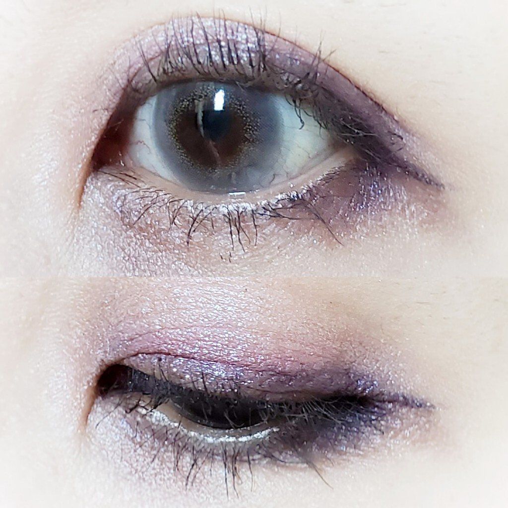 なんとなくだけど左側がブルベ寄り、右側がイエベ寄りの色味でニュートラルなパレットかなと思いました。 目元写真みると発色薄く見えるかなとおもいますが朝メイクして、直さず夜に撮ったのでこんな感じです。 カラコンはmimucoのブラウンフォンデュミムコのカラコンはどれも自然でかわいいです。