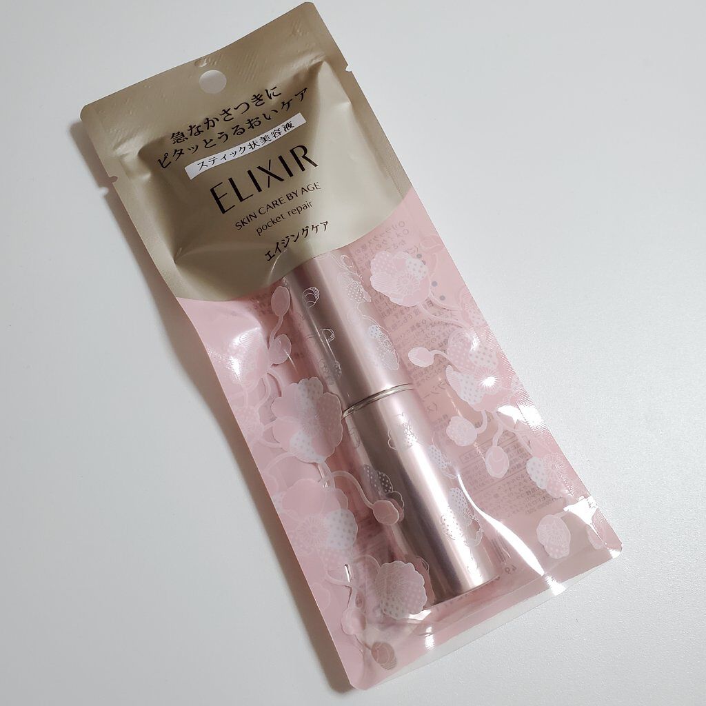 エリクシール ポケットリペア SPスティック状美容液◎メイクの上からも使える。日中の乾燥が気になるときにさっとケアできる。持ち運びしやすいサイズなので、メイクポーチに入れていつでも使える。肌のかさつき、粉ふきをピタッと抑えながら、スーパーヒア...