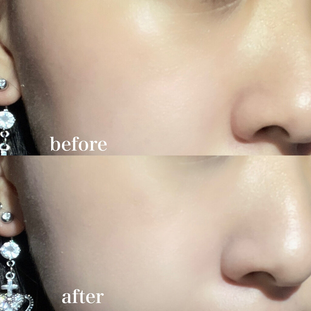 名前にある通り さまざまな凹凸をフラットに仕上げる オイルを抱え込んだパウダーが、毛穴にあわせて形を変えてピタッと密着 との事 見た目から結構ピンクそうだなと思って 手に出してみると意外とピンクくない! なんなら白っぽくトーンアップします カバー力はそんなにないですね 伸びが良いので使いやすい🙆♀️ 私は色素沈着とかクマがひどいタイプなんだけど 結構明るくトーンアップしてくれました! 小鼻の赤みもピンク系のベース塗ったとは思えないくらい明るくなりました✨ ラロッシュポゼの方がベージュみが強くて RMKの方がピンクみが強い でも伸ばすとRMKの方が白っぽくなります