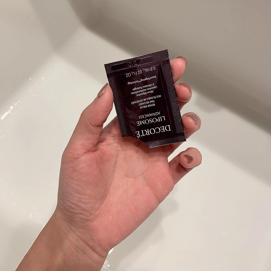 #giftedコスメデコルテ様の#シェアリポキャンペーンに当選し、リポソームアドバンスト リペアセラムをいただきました。好きな導入美容液なので嬉しいです。商品特徴はリーフレットにて。テクスチャーはとろーりもったりしてます。とても伸びがよく、ベ...