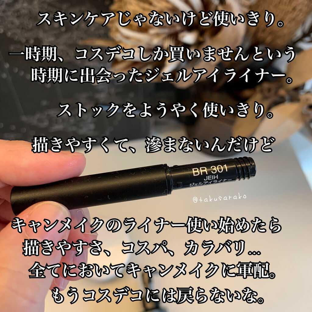 | ジェルアイライナーランキング第4位 | 書き心地はするするとなめらかに引けます。かといって柔らかすぎずちょうどいい^^ | 詳細を見る | |