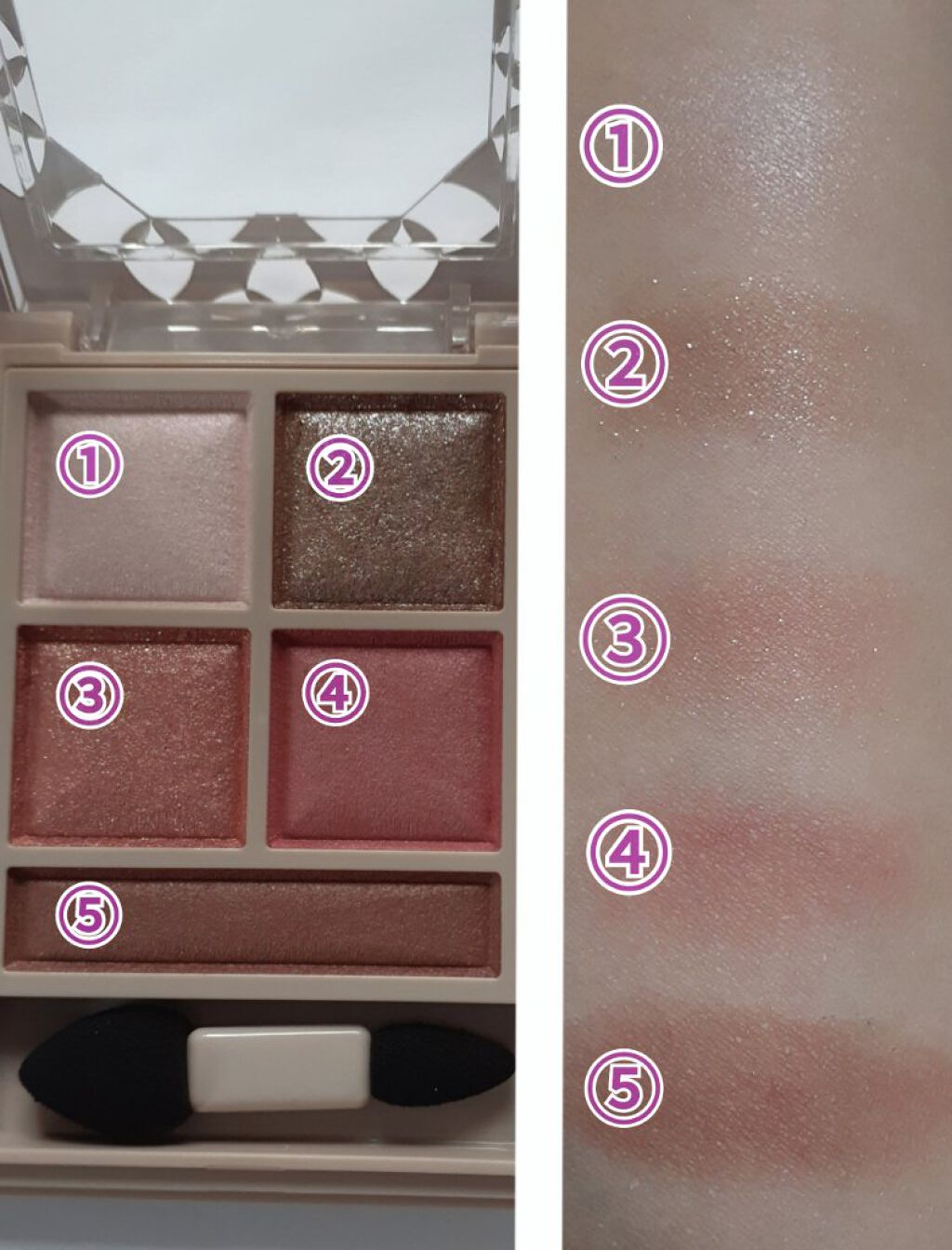 どちらもパウダーの質がしっとりしていて密着してくれるため申し分はないほど良いアイシャドウです(*^^*) 02ローズセピアどの色合いも繊細なパールのツヤ感が美しいパレットで特に上の淡い色合い2色のパール感がとても綺麗です。 08ストロベリーコッパーこちらは華やかなラメ感を感じるアイシャドウです。特に右上の濃いピンクと左下の薄いブラウンのラメが美しくまた左上の薄いピンクが明るく華やかでパールがとても綺麗です。