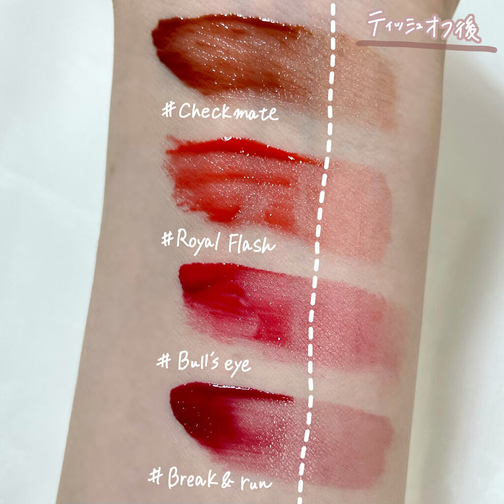 まず、パケが可愛いすぎる!! キレイな水色のパケにときめいちゃいます(灬ºωº灬)!! 中でも推したいのがチェックメイト! ヌーディなベージュカラーのティントって珍しいですよね!! 乾燥しないところと色味そのままティントするとこも◎です!