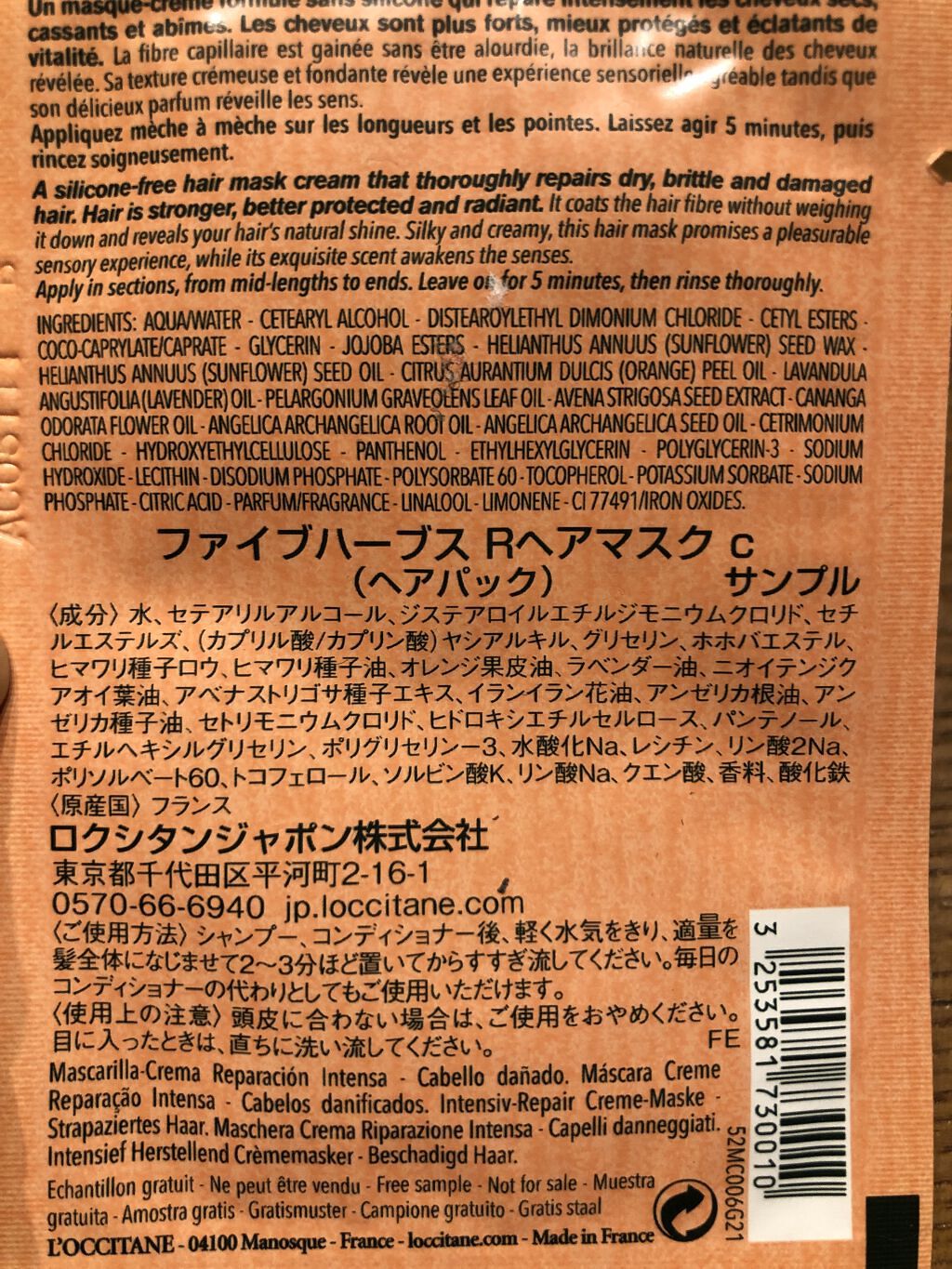 L'OCCITANE ファイブハーブス ディープモイスチャライジング ヘアマスク | 4,620円 |