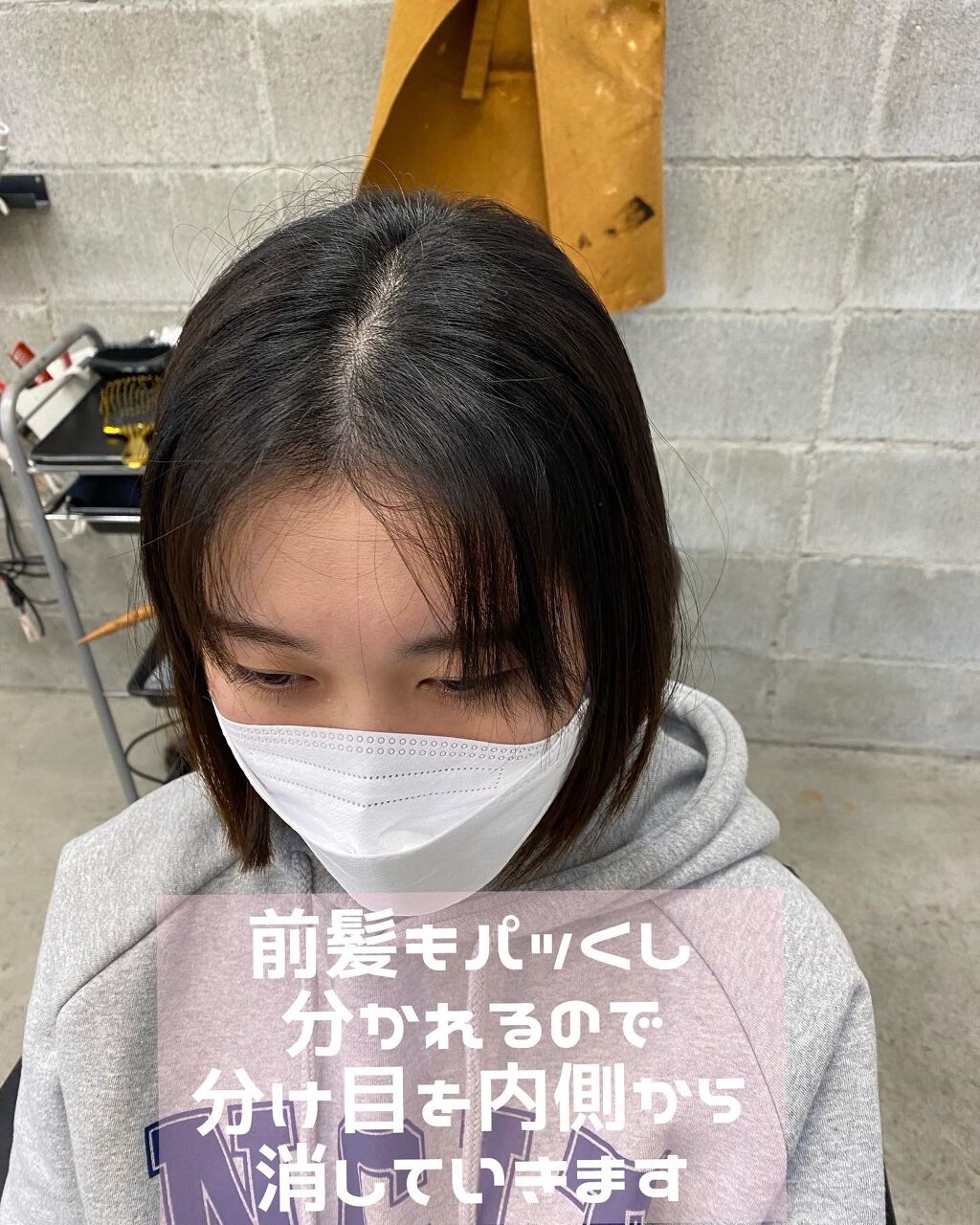 ブリーチで切れてしまって形がなくなってしまった髪型 表面の切れ毛を出来るだけ隠すようにボブスタイルをご提案 丸みを出すようにカット ラインを綺麗に出すカットで首がすらっと見えるデザインに 日本風の柔らかいボブに変身です