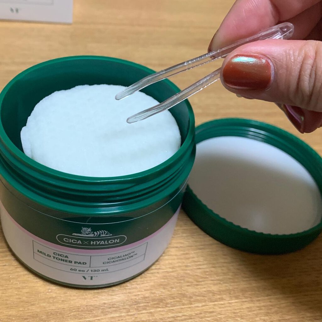 - <CICA マイルドトナーパッド> 水、グリセリン、BG、サリチル酸、ツボクサエキス、ヒアルロン酸Na、アシアチコシド、マデカッソシド、マデカシン酸、アシアチン酸、プロポリスエキス、ホソバニンジンエキス、ハマメリス葉エキス、セイヨウシロヤナギ樹皮エキス、アラントイン、β-グルカン、トロメタミン、コハク酸ジエトキシエチル、クロルフェネシン、ラウリン酸ポリグリセリル-10、ミリスチン酸ポリグリセリル-10、エチルヘキシルグリセリン、デキストリン、クチナシ果実エキス、EDTA-2Na、トコフェロール、プロパンジオール、ベタイン、グリチルリチン酸2K、香料、1,2 -ヘキサンジオール