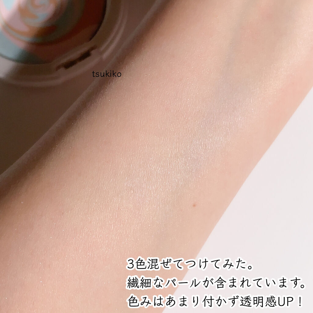 私は、どんな肌色でも透明感を出せるカラーの 01 クリアベージュを選びました。 お肌に伸ばすと、3種のパウダーが混ざってパッと透明感が出ます。 セラミドなど保湿成分も配合されているので、さらさらした潤いのあるお肌が続きます。 化粧下地のあとに、ファンデーションなしでパウダーをのせて1日過ごしてみると、肌にしっかり密着して、撥水効果もあるので崩れもかなり防止されました。 乾燥のないうるツヤのお肌で毎日を過ごすことができて、嬉しいです😊