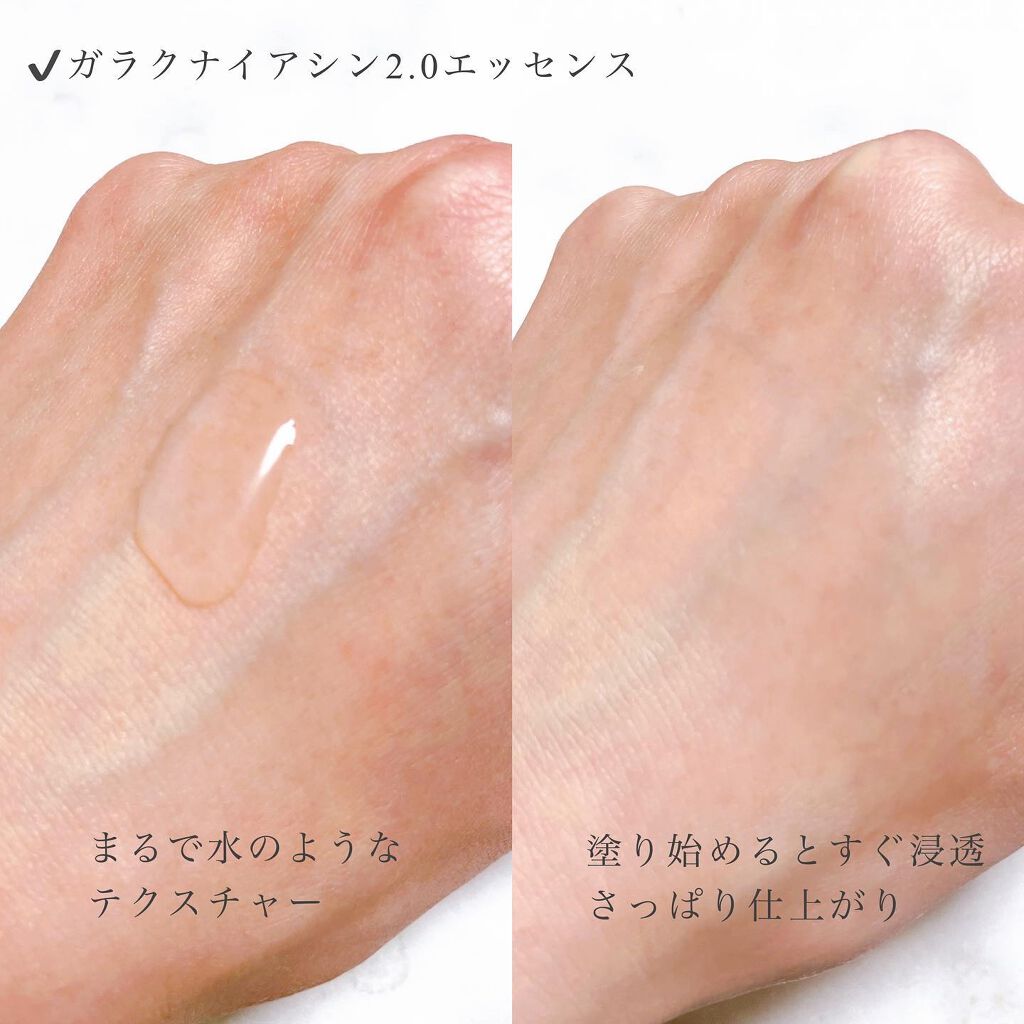 デパコス泣かせのクオリティでバズりまくり📣 なめらか肌に導くmanyoのベストセラー美容液のガラクナイアシン2.0エッセンス✨ さらさらとしたテクスチャーで、肌なじみがよくベタつかないのにしっとり保湿できてお気に入り♪ 朝のスキンケア時の導入美容液として使用すると化粧モチがよくなるから個人的におすすめだよ!