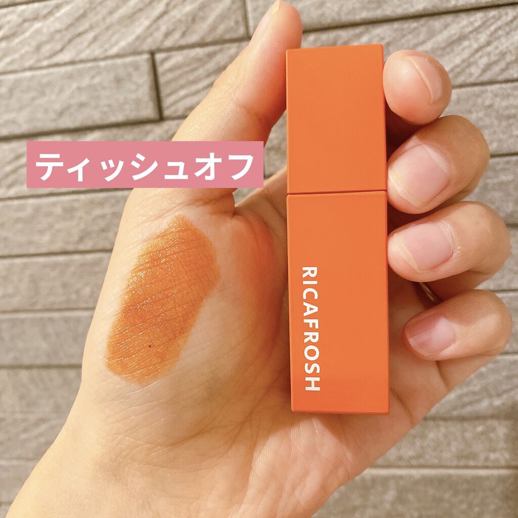 【RICAFROSHジューシーリブティント01オランジェット¥1,848】リカフロッシュ(RICAFROSH)の「ジューシーリブティント」は、人気インフルエンサーの古川優香さんがプロデュースしたリキッドタイプのリップティントです。みずみずしい...