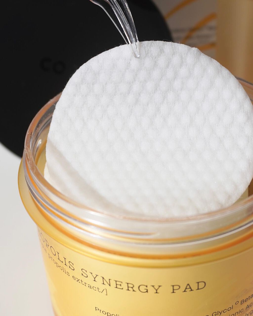 天然由来成分であるプロポリスエキス84%を使用した栄豊富なパッドで、くすんだ肌が見違えるような印象に。 フルフィットプロポリスシナジーパッドも拭き取るとびっくりするくらい汚れたがとれる、、、。 仕上がりしっとりしてるから乾燥する季節にもよい!!