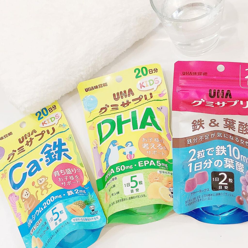 サプリメントはグミでとります。そうでないと続かないので。 UHA味覚糖のマルチビタミンはピンクグレープフルーツ味でおいしいです。少し硬めのグミです。 両方とも美味しいので続けられます。