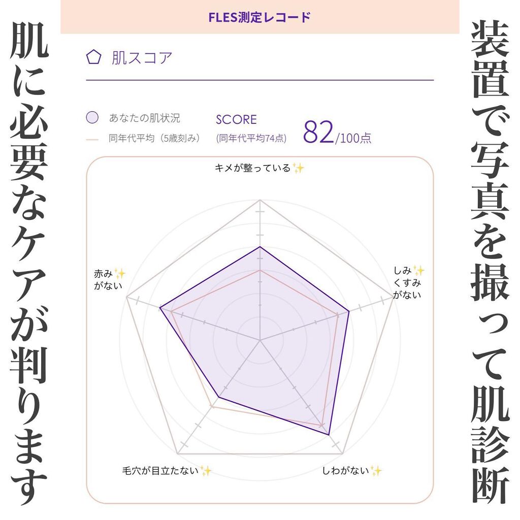 今話題の!美顔器のサブスク𓈒❁⃘FLESプティ・オートクチュール一番最初に自分の肌状態についての質問に応えれば、肌状態を見える化してスキンケアを最適化!美顔器に付いてるカメラで肌をスキャンして分析してくれる◎水分量や皮脂量がグラフになって目に...