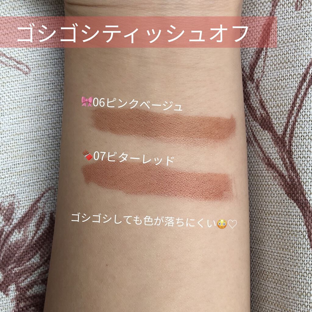 CEZANNE ウォータリーティントリップの06ピンクベージュ、07ビターレッドを頂きましたので、紹介していきます😘😘😘 06ピンクベージュ なじみ◎の#mlbb カラー。粘膜カラーで美人見せ♡ おしゃれピンクめっちゃ可愛い♡ 赤黒く見えるけど、馴染みめっちゃいい ティッシュオフするとブラウンぽい色味になっておしゃれ💃(これからの時期のリップにぴったり😘) 07ビターレッド 深みカラーで大人っぽ印象。メイクを引き締めて上品に。 大人レッドが顔に映えてめちゃめちゃおしゃかわになる♡ 上品な大人の色気!ちょいえろリップ💋💄 ティッシュオフすると明るめカラーに。(大人おしゃれは健在😇♡) 冬リップにおすすめ!!!めっちゃ!!! ちゅるちゅるな水感で、うるおいのある濡れてるみたいなツヤ唇が出来上がる…😘 ティッシュオフしてもうるおいそのまま〜♡(1回のティッシュオフ時)