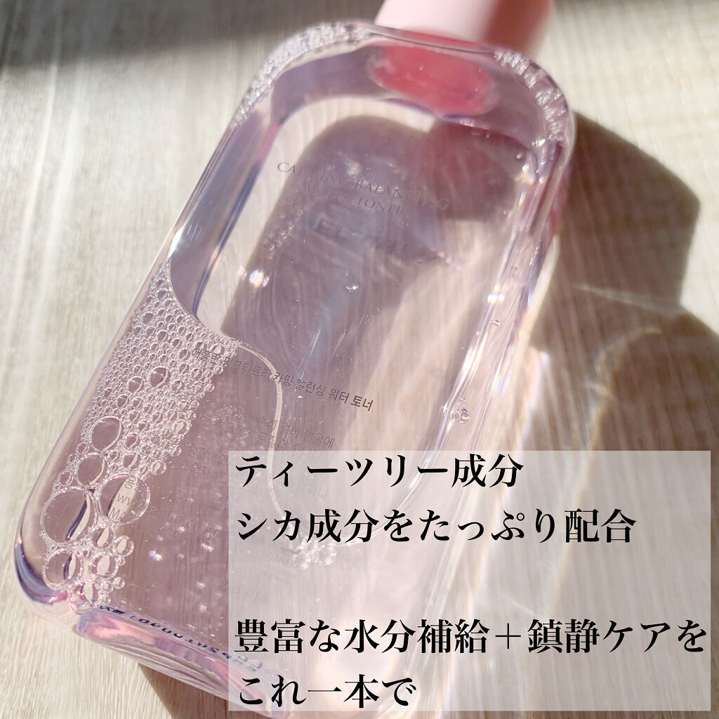 ティーツリーや、シカエキスを配合でニキビ、肌荒れ悩みをケアしてくれるトナー🩷 ピンク色は自然成分「ビタミンB12」本来の色だそう✨ サラサラテクスチャーで、さっぱりした使い心地✨