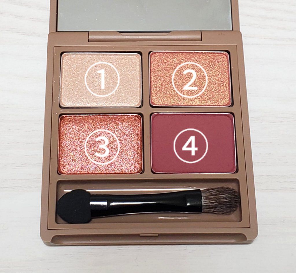 ➀SV841 ダイヤモンドシュガー→煌めきがヤバすぎるシルバーラメ。粉質がしっとりしていてラメ飛びが全くなく、下まぶたに入れるとパッと華やかな印象になります♡ ②PK214 フレーズオレ→艶がキレイなピンクカラー。薄めにベースカラーとしてぬるとめちゃくちゃかわいい!!薄めに塗っていただければイエベさんでも使えそうですᕷ ③RS319 ルビーカカオ→少しくすみ感を感じるマットカラー。このカラーを仕込むだけでマットで大人なメイクにもദ്ദി ˉ͈̀꒳ˉ͈́ )✧ ④RD532 カシスボンボン→赤みを感じるブラウンカラー。ラメが少し入っているのでしっかり入れてもきつくなりすぎない万能な締め色だと思います♡