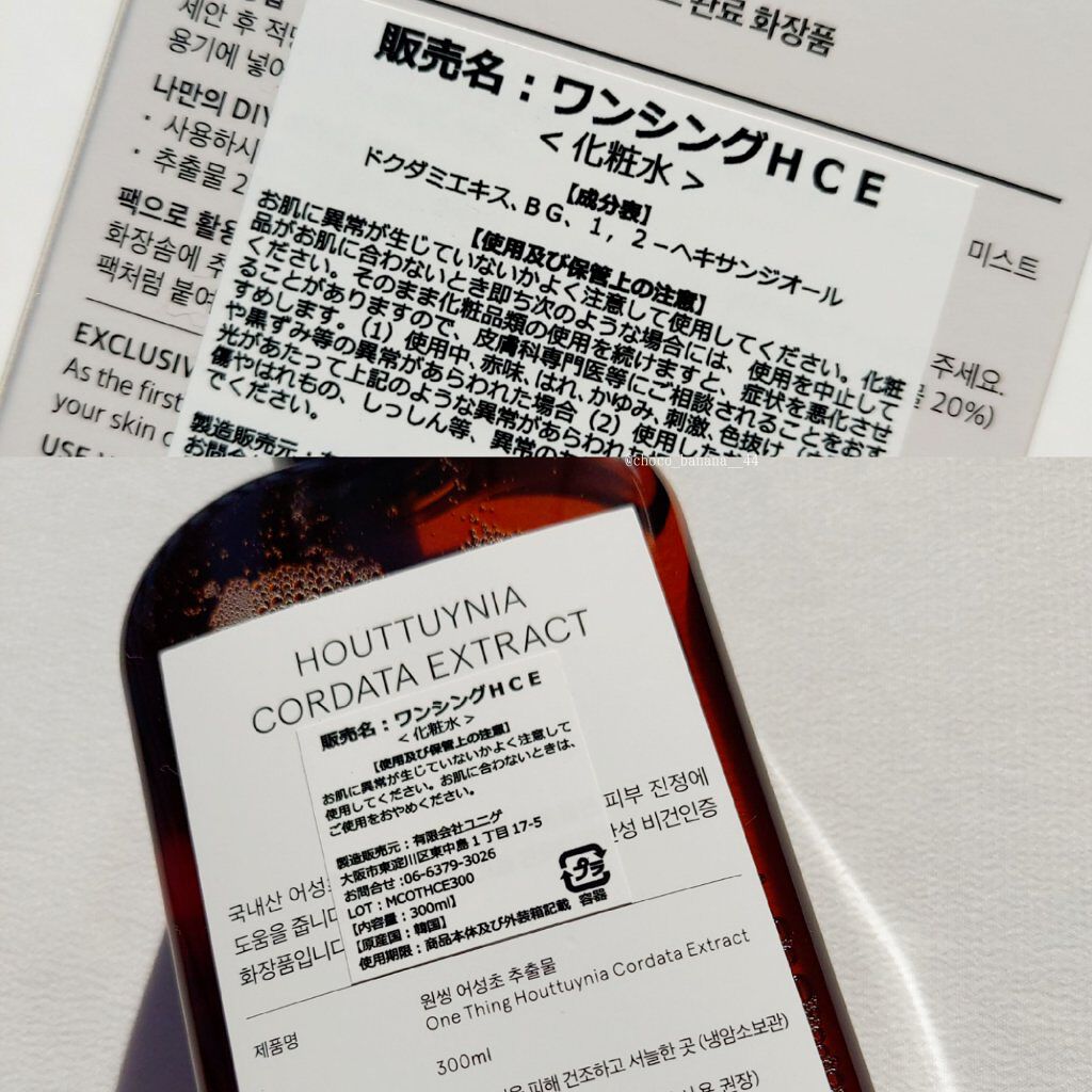 - <150ml> 水、BG、ドクダミエキス、1,2-ヘキサンジオール <300ml> 水、BG、ドクダミエキス、1,2-ヘキサンジオール