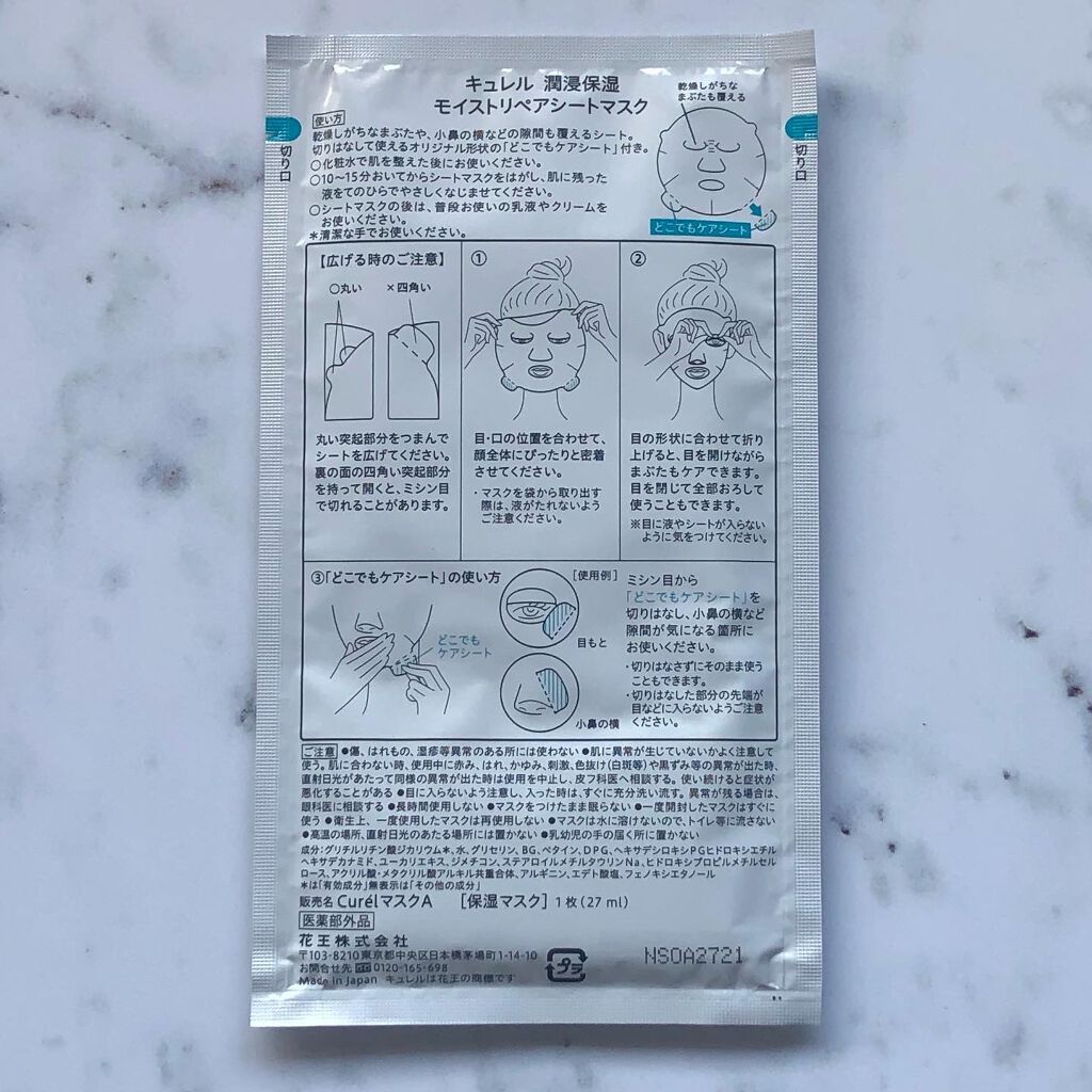商品詳細情報キュレル 潤浸保湿 モイストリペアシートマスク