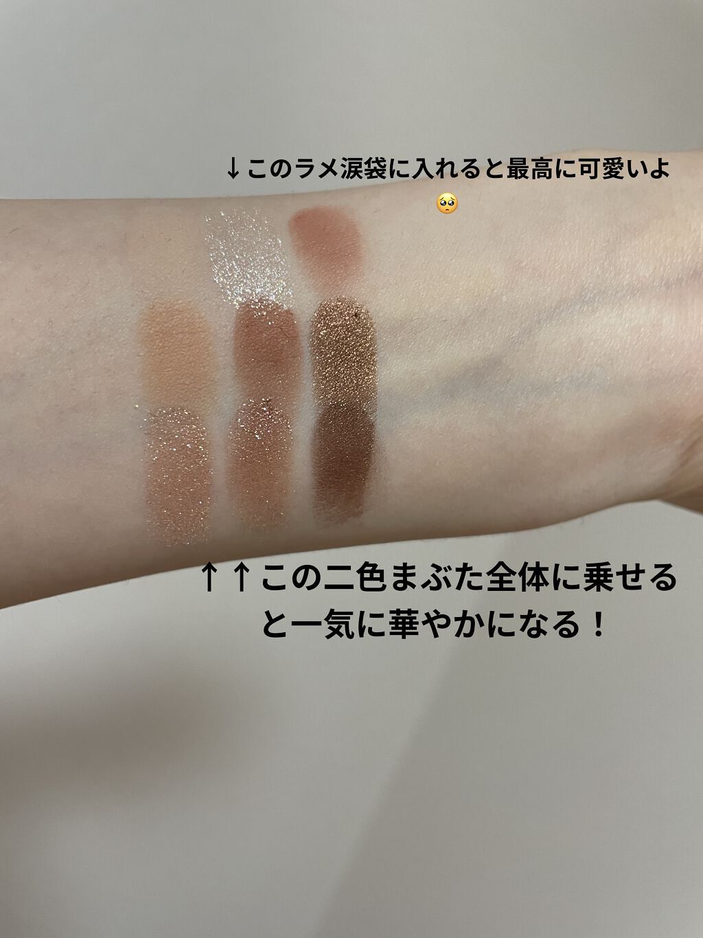 秋冬にぴったりのくすみカラーで比較的どの人でも使いこなせそうで、カラーメイクに寄りすぎないピンクブラウンパレットです ラメは細かめのラメカラーとチラチラ光るピンク系ラメとなっていて本当可愛い🩷 クリスマスデートはこのアイシャドウパレットつかう!!決まり!