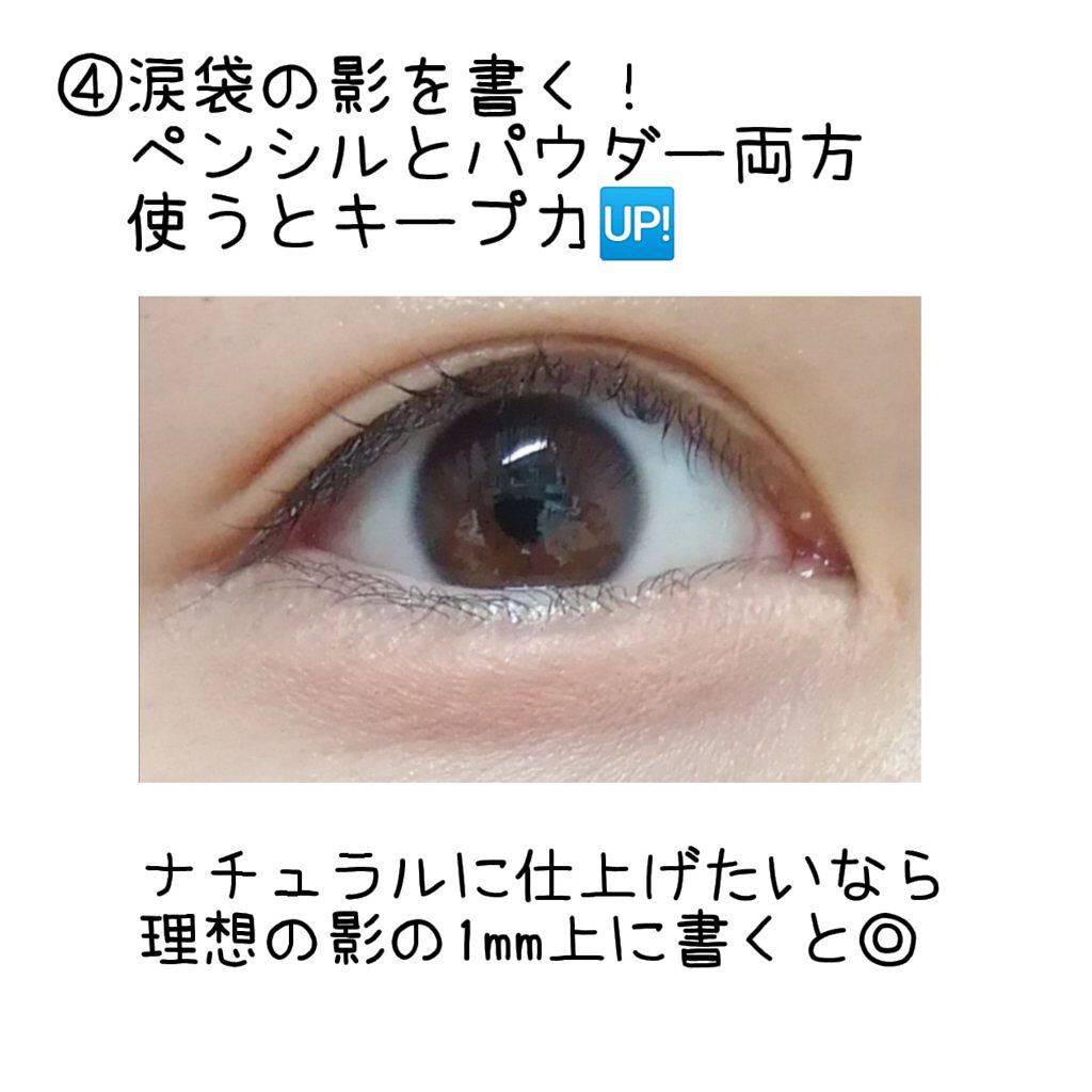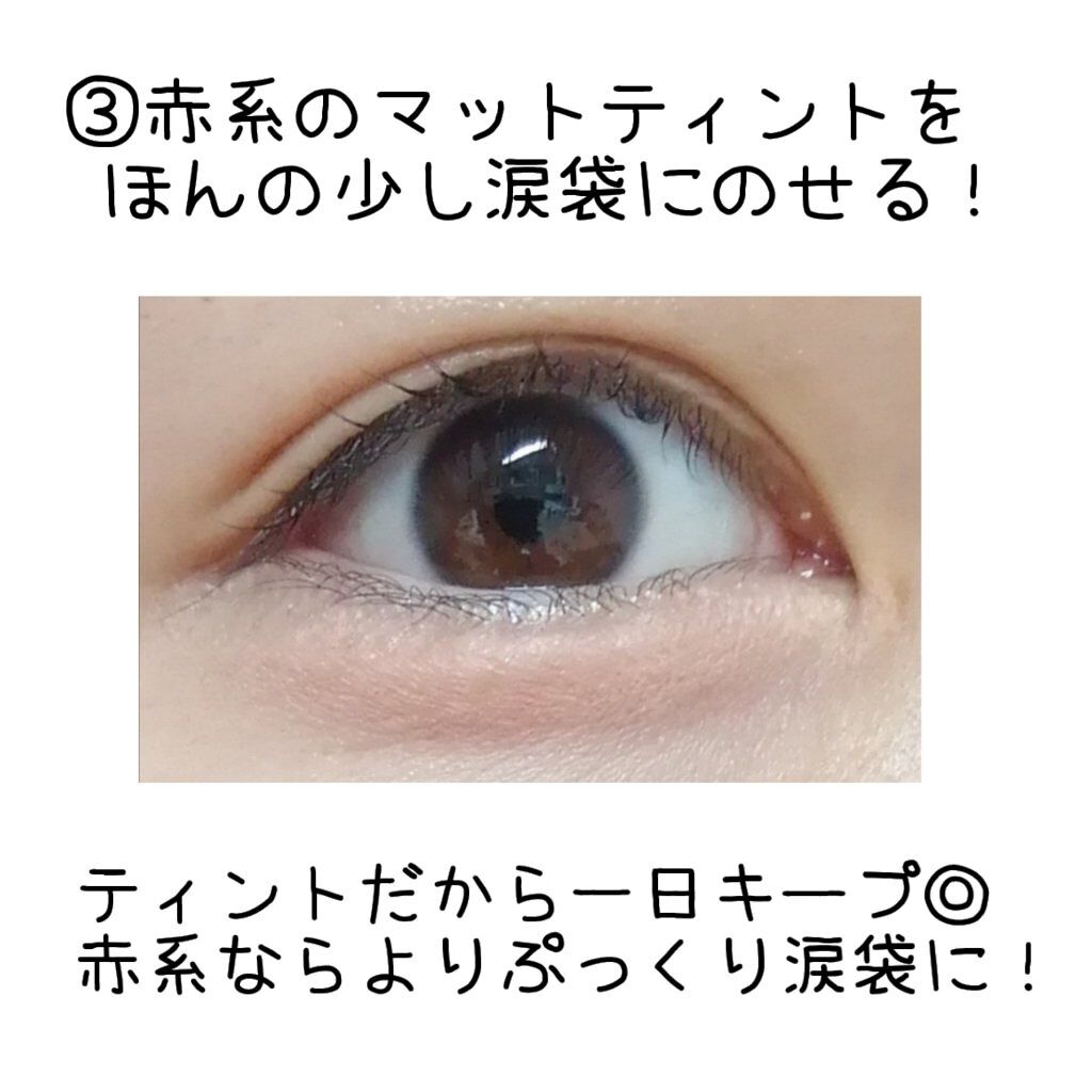 涙袋ゼロの私が考案したメイク法です! 赤系のマットティントをほんの少し涙袋にのせる! 涙袋の影は、ペンシルとパウダーの両方を使うことでより落ちにくく、立体的になります! 簡単にデカ目になれるし、中顔面を短くみせられるので可愛い印象になります✌️