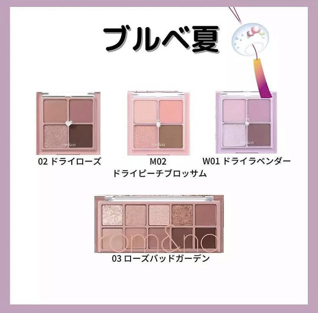 イエベ春01、05、W02、M03、01、N01、 ブルベ夏02、M02、W01、03 イエベ秋N01、03、M01、M03、02、05 ブルベ冬M02、02、N02、04
