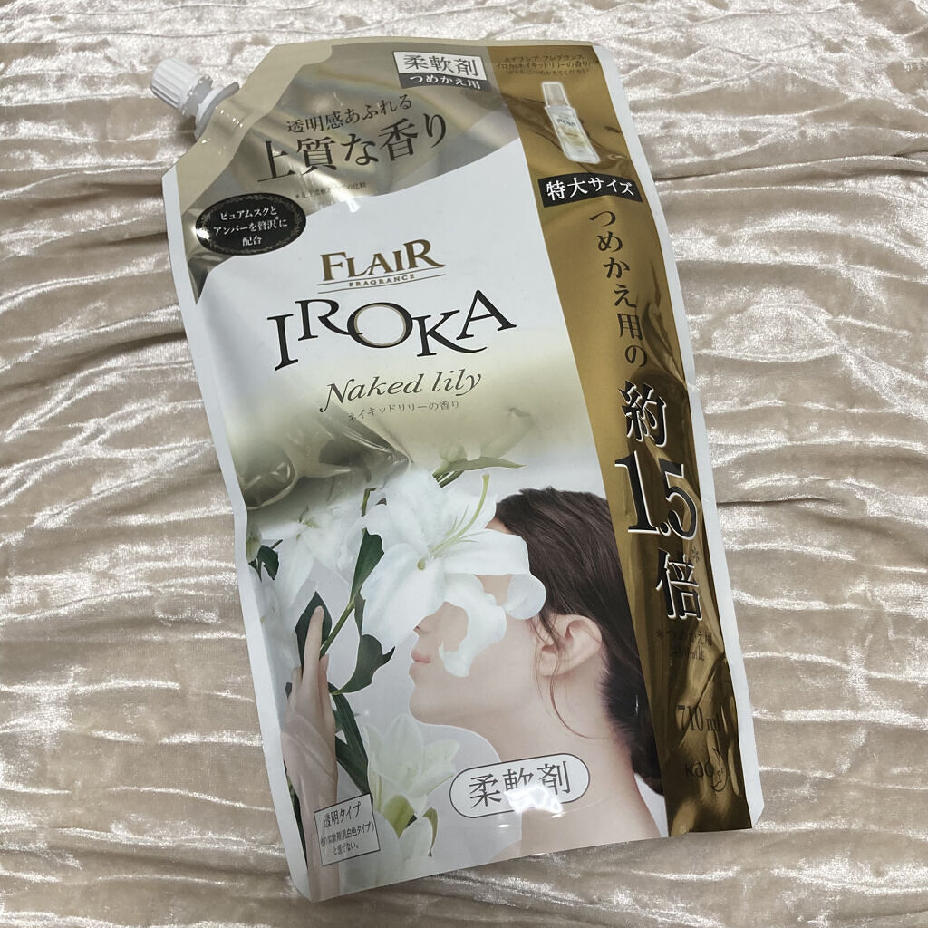 - 香水のように香り高い プレミアム柔軟剤IROKA。 素肌のあたたかさを想わせる「ピュアムスク*1」と、香水には欠かせない「高級アンバー」を贅沢*2に使用。 香水のように上質、なのに透明感あふれるその香りは、あなたらしい美しさを、上品にさりげなく引き立てる。 透明感あふれる上品な「ネイキッドリリー」の香り。 *1天然ムスク香気の主成分と同構造のl-Muscone *2当社柔軟剤比